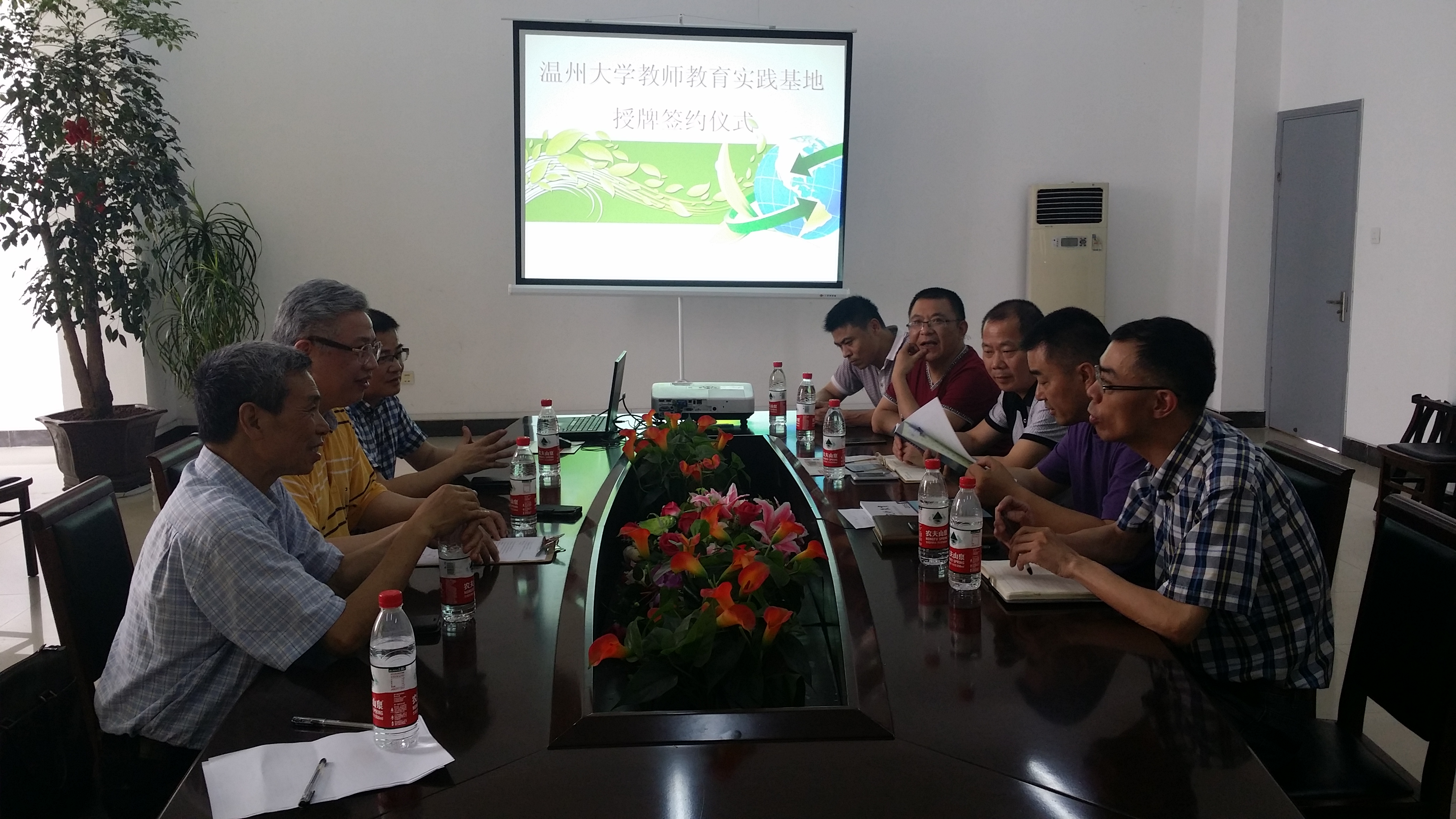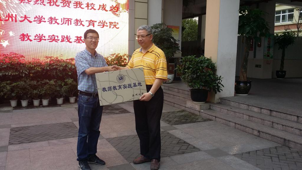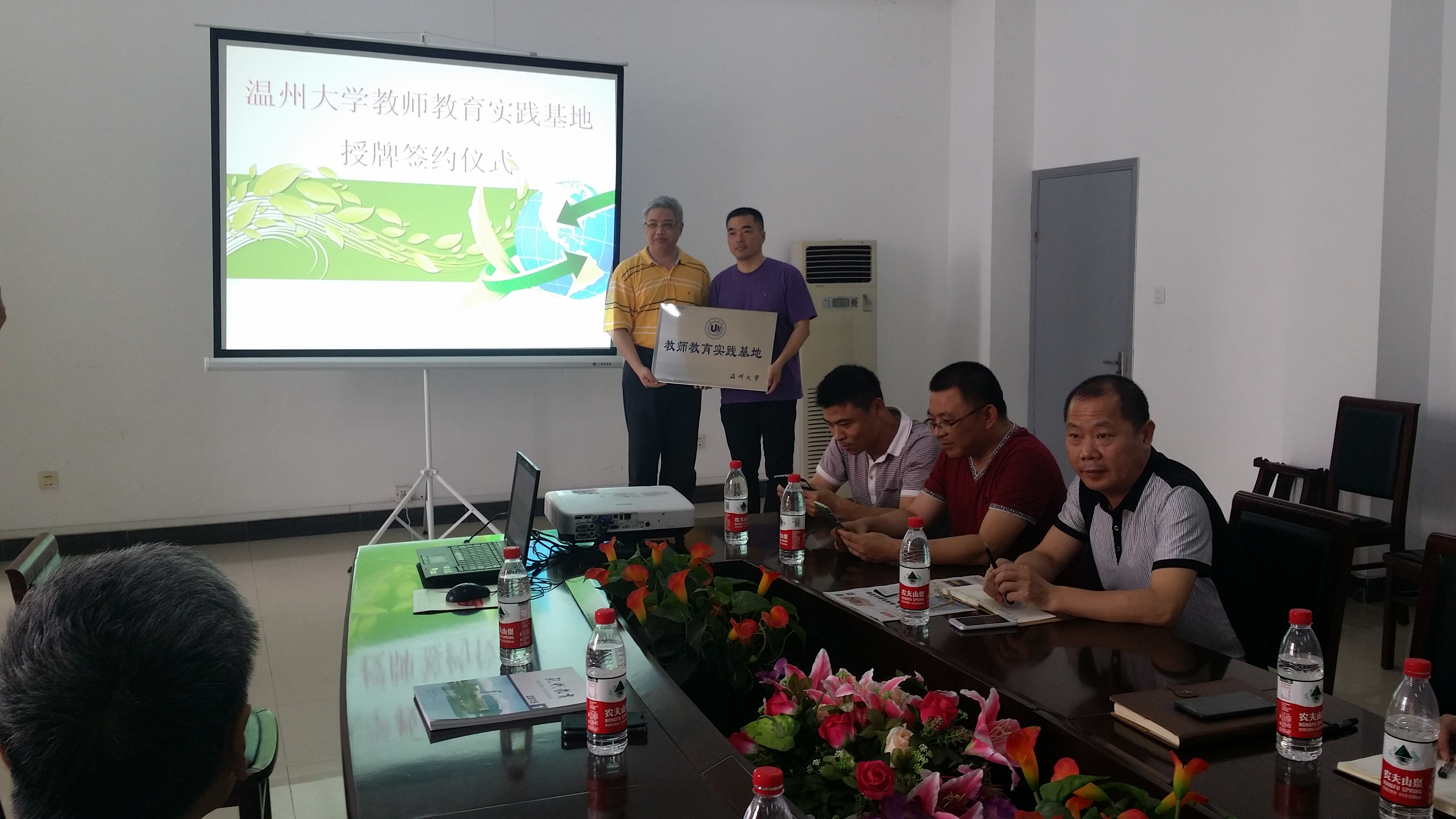 随后,潘院长一行来到瑞安市外国语学校,在该校林弢校长的主持下,举行了“温州大学教师教育实践基地授牌签约仪式”。双方真诚表达了合作的意愿和方向,潘院长就协议详细解读了在哪些领域双方可以合作。仪式之后,潘院长与实习生做了会谈,了解实习情况,并下学生寝室,了解生活情况。