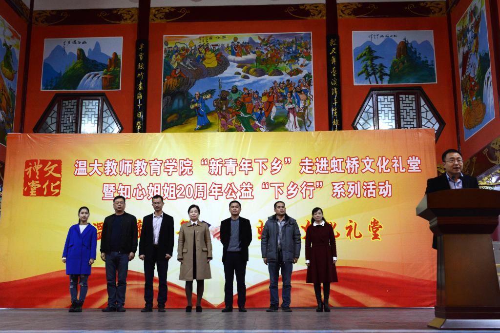 “新青年下乡”走进虹桥文化礼堂暨知心姐姐20周年公益“下乡行”系列活动启动仪式顺利举行,乐清市委宣传部副部长徐燕、虹桥镇党委副书记胡永斌、虹桥镇党委宣传委员吕海疆、温州团市委学少部部长池腾飞、乐清团市委 学少部部长 郑亦弟,温大教师成人网站