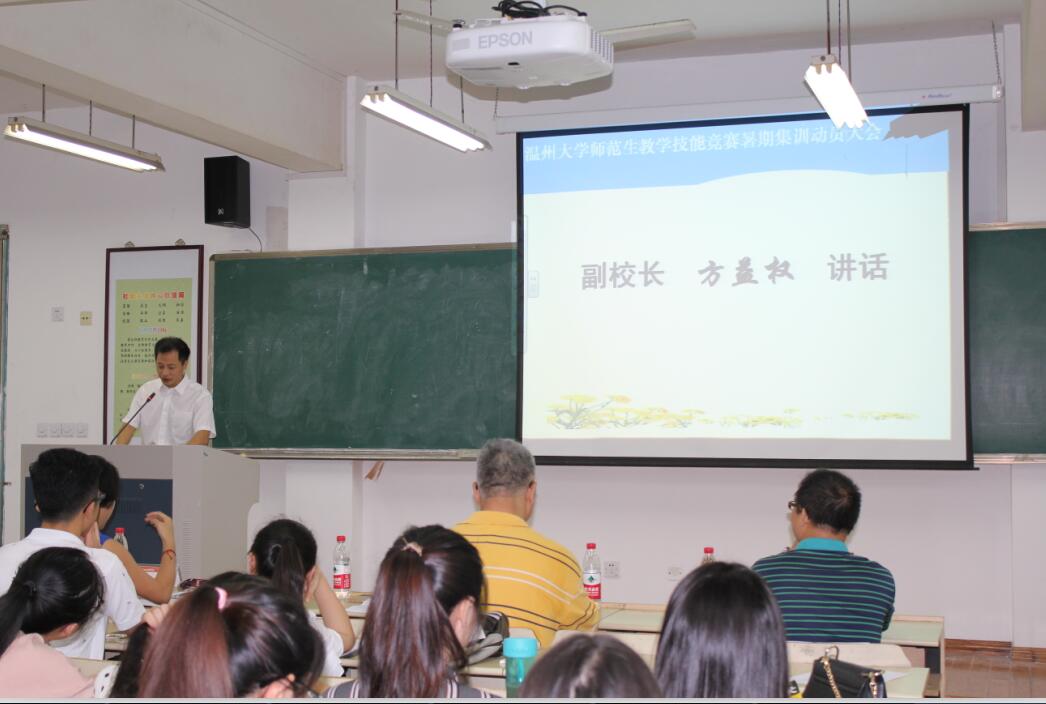 2016年7月8日上午8点30分,温州大学师范生技能竞赛暑期集训动员大会在南校区教师教育楼101教室召开。出席此次动员大会的嘉宾有温州大学副校长方益权教授、教师成人网站