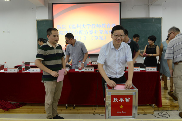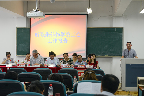 经过紧锣密鼓的筹备,成人网站 于2016年7月7日上午在南校区教育楼C301大教室隆重召开三届一次教职工暨工会会员大会。大会主要议程包括听取并审议学院工会工作报告、审议通过《温州大学教师成人网站 “十三五”发展规划草案》、投票表决《温州大学教师成人网站 津贴分配方案补充条例(试行)》(草案)、选举产生学院第三届工会委员会委员等。大会预备会确定了郑信军、杨立淮、潘玉进、彭小明、胡瑜、杨丽君、朱伟、折延东、颜文靖、李梁、陈旭微、黄玮、叶新东等大会主席团成员,并在主席台就座。杨立淮书记主持大会。