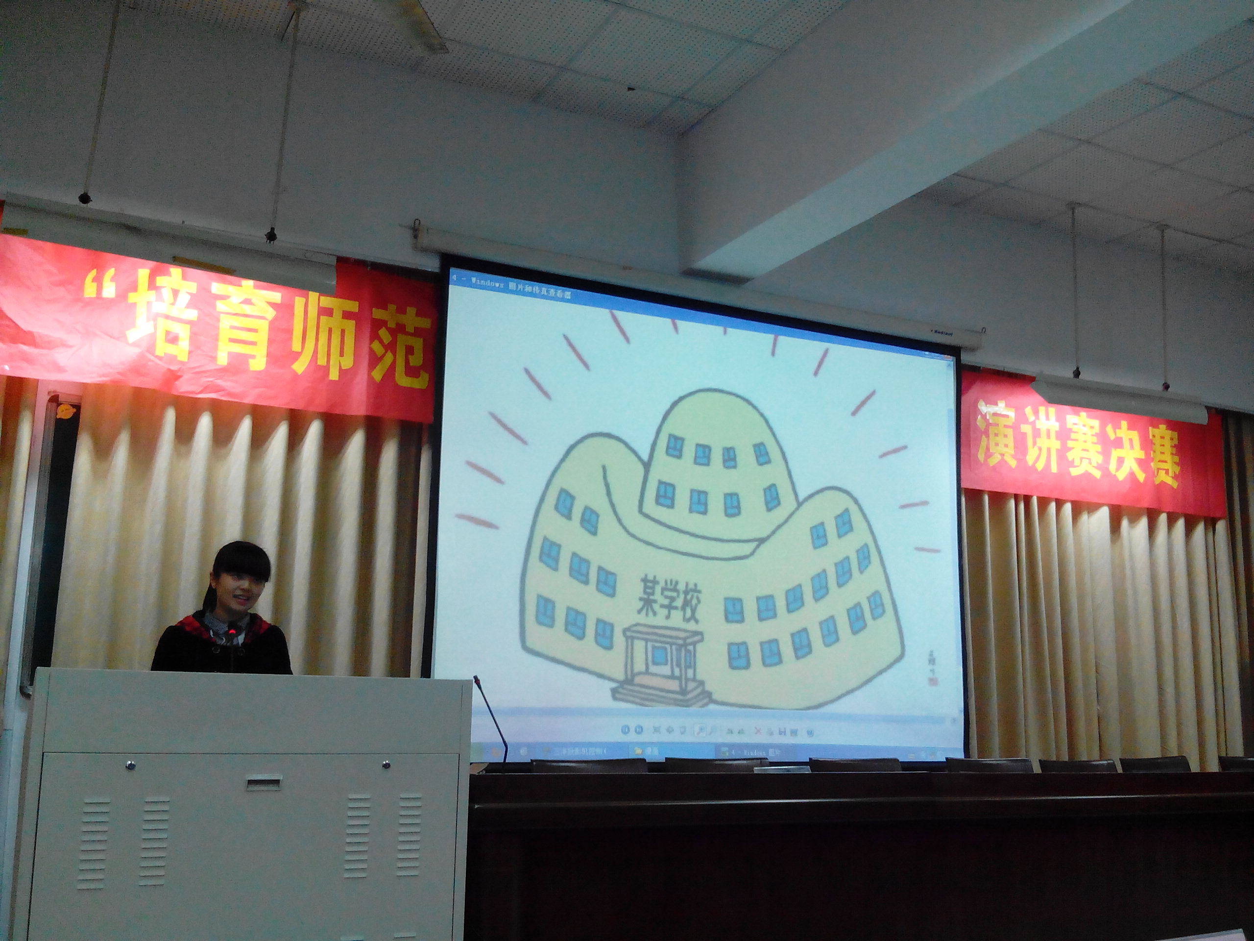 2013年12月5日晚上,在3号楼的101教室,进行了师范气质节“培育师范气质,争当卓越教师”的演讲比赛。