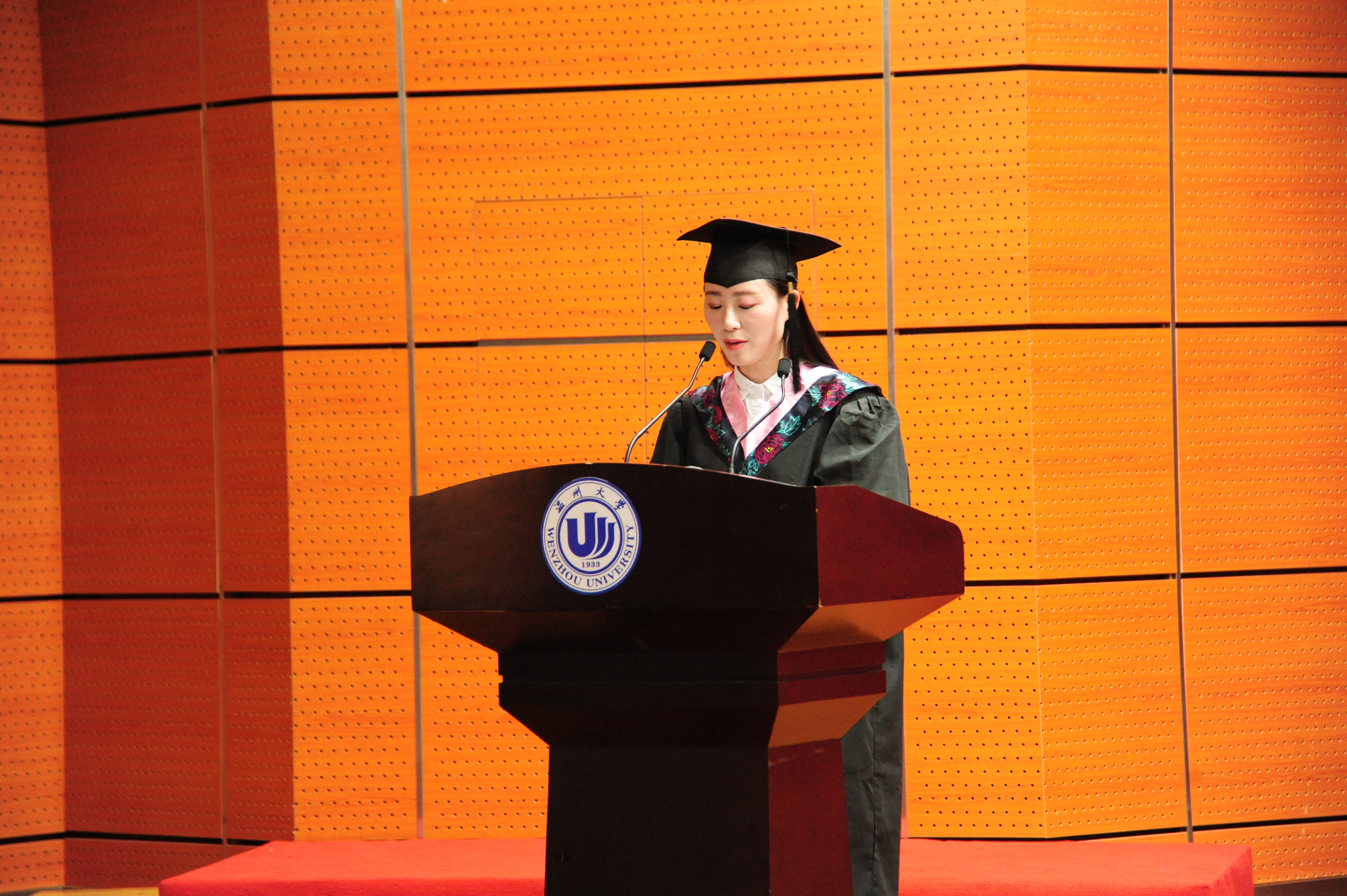 12教育技术班的黄杨丽同学作毕业生代表发言。曾为温州大学学生会主席的她,代表全体毕业生向母校、向教师成人网站