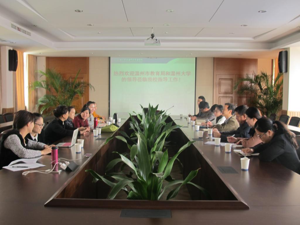 这是本学期教育局携温大来温职专期中考试后的调研工作,调研工作以座谈会的形式开展,与任课老师亲切会谈交换意见,大家畅所欲言,谈学生谈对教育教学中的困惑;温职专黄伟伟副校长汇报五年一贯制的教育教学工作;领导专家参观了学前教育实训场所、寝室、教室;应元涨处长、嵇小怡副书记充分肯定了温职专对学前教育五年制教育教学的工作的重视和务实,表扬了幼师学部教师细致严谨、负责积极的工作态度,并对教师的困惑做了详尽的解答,对五年制幼教人才的培养提出了建设性的意见,大家表示对温州大学、温州职业中专共同培养优秀的幼教师资倍加关注、充满期待、满怀信心 !