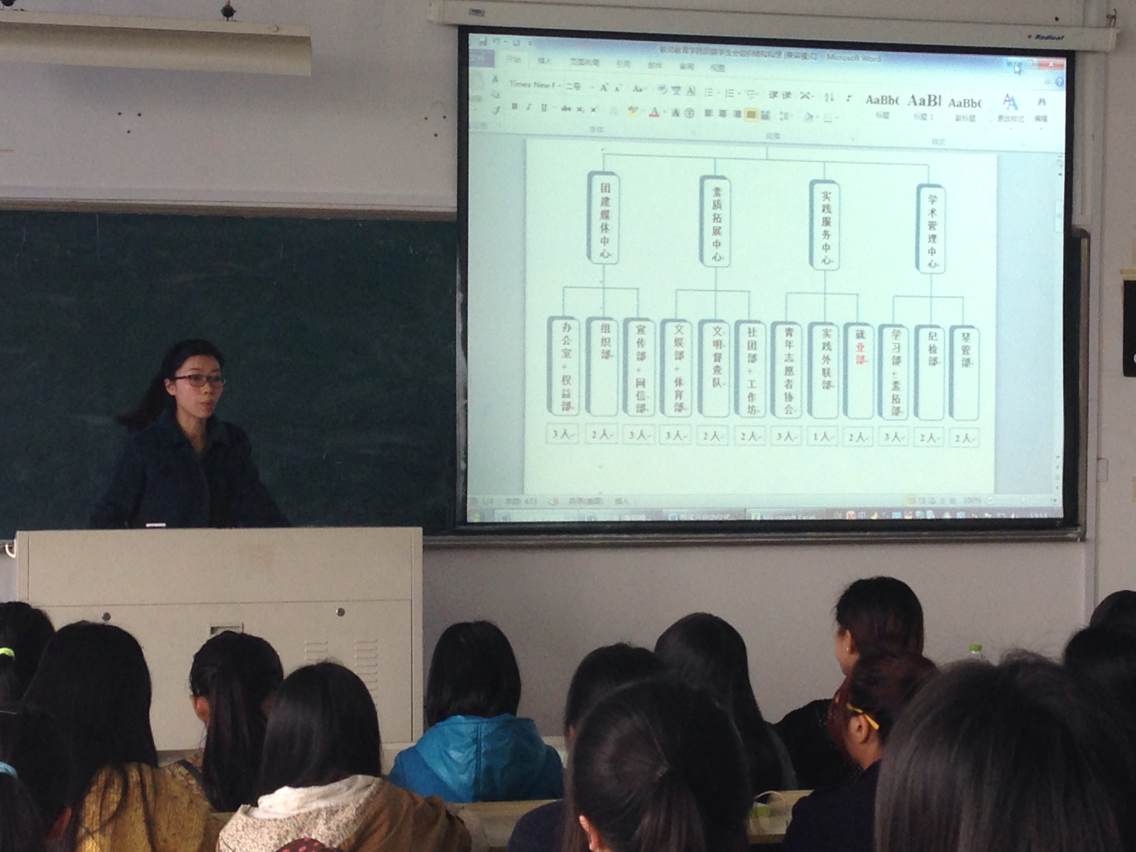 团委学生会于三号楼302教室召开了全体干事会议,学习有关学生会的中心制改革问题。学生会指导老师陈秀雅和严晓秋在百忙之中出席了本次会议。