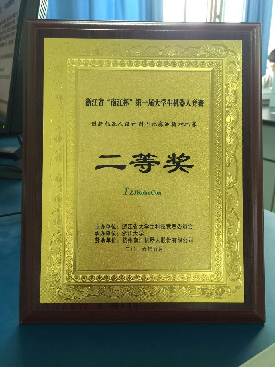 浙江省大学生机器人竞赛是浙江省教育厅高教处、浙江省大学生科技竞赛委员会主办的省级大学生科技竞赛活动,旨在培养和提高大学生多学科专业知识交叉、知行合一、创新创业创造和团队协作能力,同时促进浙江省机器人人才培养、优秀工程人才培养,为高等院校开展实践创新教育教学改革、加强高校与企业之间联系、推动机器人技术和产业发展。张老师与6位参赛同学历经半年时间的筹划、组织和训练,克服机器人陈旧和没有正规比赛场地等困难,学生用辛勤与汗水收获了回报,将所学与实际相结合,培养了团队合作、自主知识探索、创新开发能力。