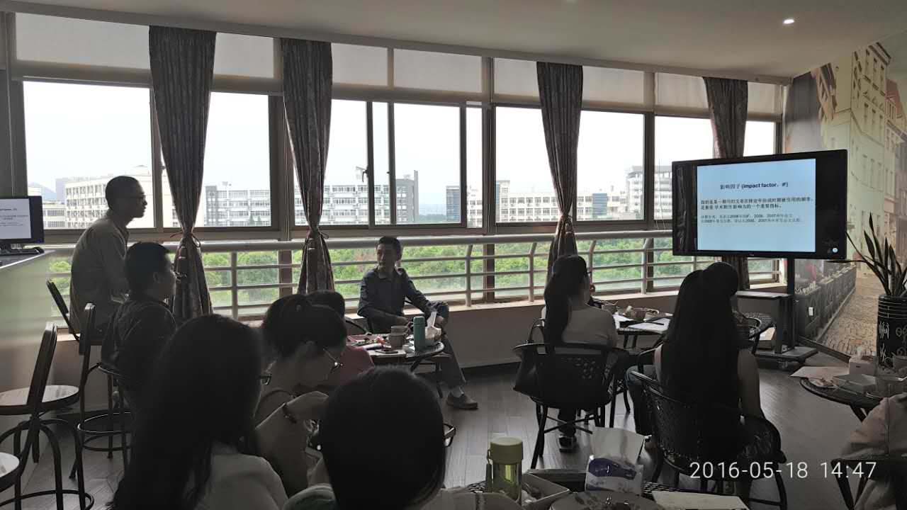9号楼四楼十亩之间举行。本次读书会由章勤琼老师主持,丁一敏、金建钰、廖传景老师为特邀嘉宾。章老师、金老师、廖老师均以自己投稿SSCI期刊的切身经验与大家分享如何有效投稿以及投稿注意事项。图书馆丁老师则主要从如何有效检索外文期刊和文献方面给参会师生建议。