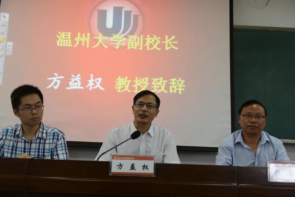 之后,方益权副校长代表学校致辞。方校长首先对同学们从溯初班顺利毕业表示了热烈的祝贺,他指出,温州大学84年的历史就是师范教育的历史,其中最为成功的典范无疑是师范教育。方校长还用近几年温州大学迅猛的发展势头鼓励同学们:作为温州大学师范专业中的“黄浦军校”——溯初班的毕业生,以后不仅可以在教师岗位上做出重大贡献,也可以在其它各个方面做出贡献。最后,方校长也对同学们提出了“不忘初心,方得始终”的期望,希望同学们不要忘记两年前开班典礼上的誓言,秉承着热忱努力奋进!