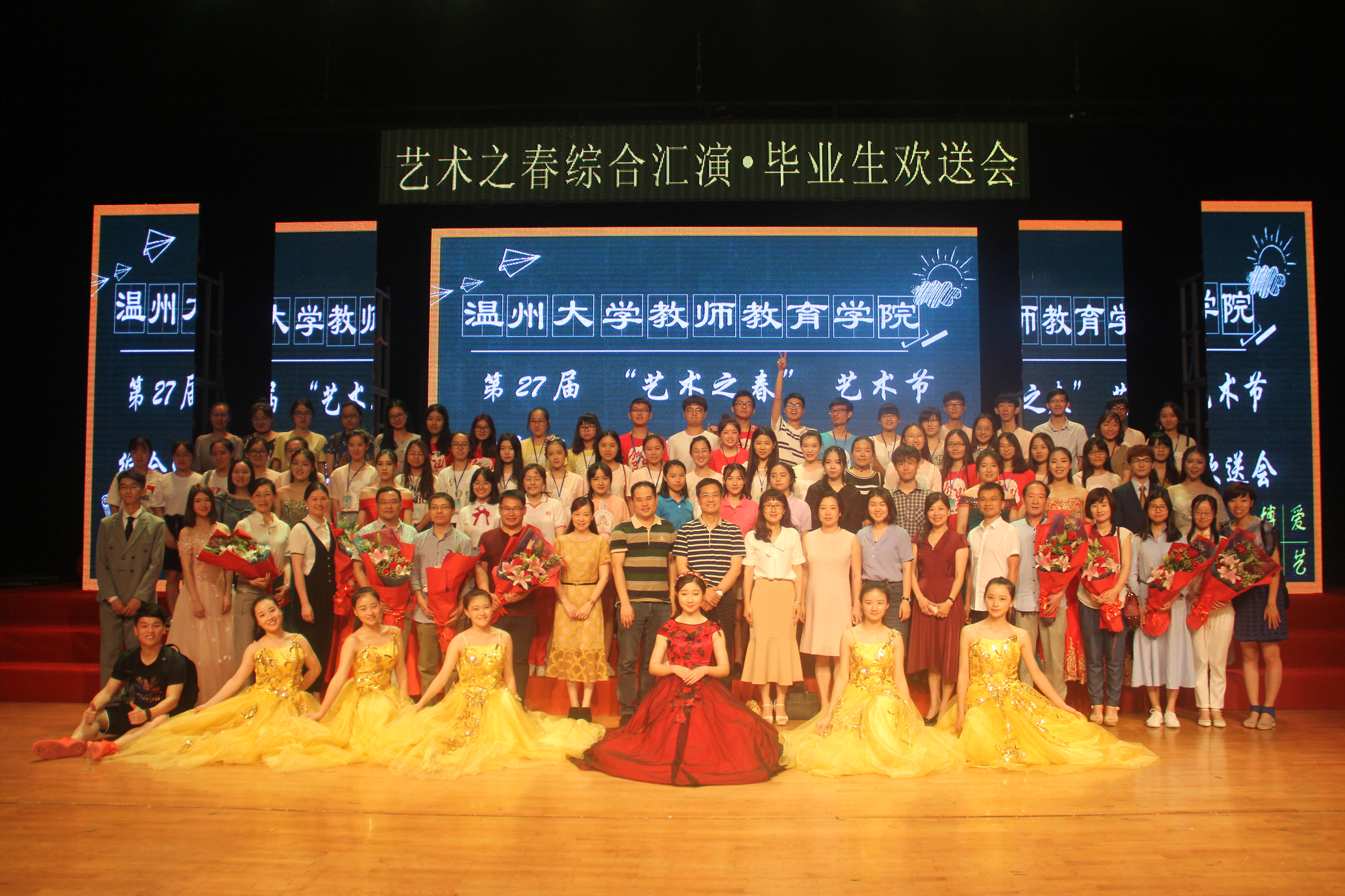 绚烂的灯光,闪耀的舞台,热情的观众。6月7日晚6时30分,我们相聚于璀璨的育英大礼堂,温州大学教师成人网站 艺术之春综合汇演暨毕业典礼如期而至。温州大学就业处处长周伟国、温州大学团委书记屠霁霞、温州大学溯初学区党委书记陈宏毅、溯初学区党委副书记章志图、温州大学学生处副处长高红星、温州市中等幼儿师范学校副校长戚强建、温州市中等幼儿师范学校副校长 侯伯念、温州市中等职业技术学校学前教学部主任吕媚媚、温州大学教师成人网站 院长孙芙蓉、温州大学教师成人网站 党总支书记杨立淮、温州大学教师成人网站 党总支副书记杨丽君等老师莅临晚会现场。