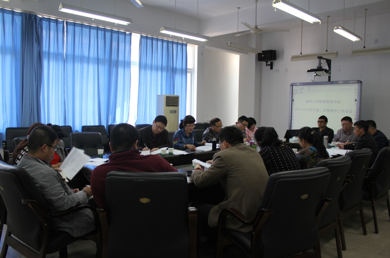 教务科科长何笃玉、副科长章园园分别就本学期各项教务工作和教学工作重点做了简要说明。孙芙蓉副院长首先传达了学校新学期教学工作会议及《温州大学课堂教学创新行动计划》等文件精神;并结合学校教学工作要点,围绕学院发展战略,部署了本学期成人网站