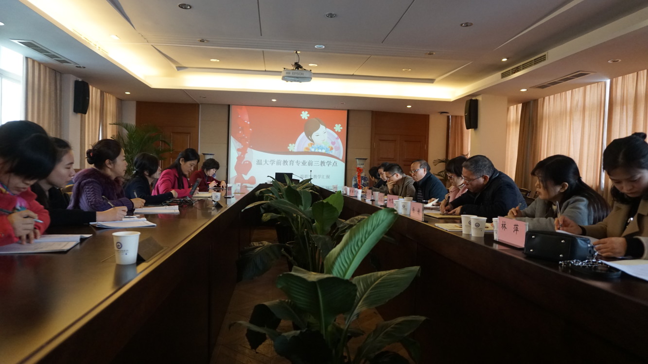 与教务处共同组建了五年制学前教育大专前三年教学点办学质量评估组,于12月7日上午对温州市职业中等专业学校进行了教学评估。评估组由学校教师教育发展中心主任、教务处副处长孙芙蓉教授担任组长,学院副院长彭小明教授担任副组长,成员由学校教务处林彩芬科长、学前教育系曾国副教授、杨婧副主任、李晓燕副主任、学院教学科何笃玉老师、学院学生科林萍科长组成。