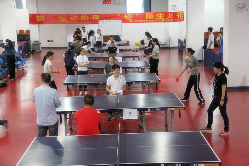 师生乒乓球大赛于温州大学南校乒乓球馆顺利开展。参与此次比赛的有杨立淮、金荣乾、折延东等教职工选手们以及各班学生选手们。此次活动不仅有利于锻炼体魄,更加促进了师生情谊。 比赛开始前,老师和学生们热情高涨、跃跃欲试,积极投入到热身阶段。下午1:30,比赛正式开始。选手们根据抽签随机选择对手,第一轮分为两组教师单打,三组学生单打。比赛一开场,学生选手们便使出浑身解数,采取各种战略与对手比拼。当然,教师队伍也不示弱,展示了教育人的风姿。第二轮比赛是教师双打。比赛双方互不相让,比分不断持平。张龙老师运用心理战术,打算用声音击溃对手的防线。然而,兵来将挡,水来土掩。杨立淮书记快、准、狠,一一接下对手的招数。一击扣杀,全场立刻被点燃了,比赛进入白热化阶段。老师和学生们全身心地投入到比赛中,所有人都在用汗水挥洒青春,用激情燃烧梦想。比赛最精彩的看点是师生双打。教师和学生组成了男女混双的组合,展开了师生友谊赛。教师双打的冠亚军和学生男子、女子单打的冠亚军组成的超实力组合,将整场比赛推向了高潮。球技堪比国家运动员般水准,旋转、下蹲、拉球、扣杀……每一个精彩的瞬间都能赢得掌声和喝彩。老师和学生紧密配合,一颗小球,却能在板与板之间回旋,运转自如。 乒乓球的每一次旋转,是合作;每一次跳跃,是信任。虽然这是一场比赛,但已经远远超出简单的比赛的定义了。我们真正领悟到了“友谊第一,比赛第二”的真谛。最后,学生与老师合影留念,为这场比赛画下了完满的句号。 曾经,乒乓球推动了中美合作。而今天,这个象征可爱的小球又一次促进了老师与学生的情谊。此次比赛,老师和学生一起用行动诠释了“生命在于运动”的理念。经过激烈的角逐,最终,朱倩云老师、 金建钰老师获得教师双打冠军,15小教1班章云聪、12小教2班章慧分别获得男子单打、女子单打冠军。球员们的风采让我们看到了教育人的生机活动,更让我们领会到浓厚的师生情。这个秋天,因为这场有爱的乒乓球赛变得更加温暖。乒乓球赛虽然已经结束,但师生节还在火热开展当中。希望学生与老师们能够在师生节寻找到乐趣,让这个秋天变得更加美轮美奂,多姿多彩!