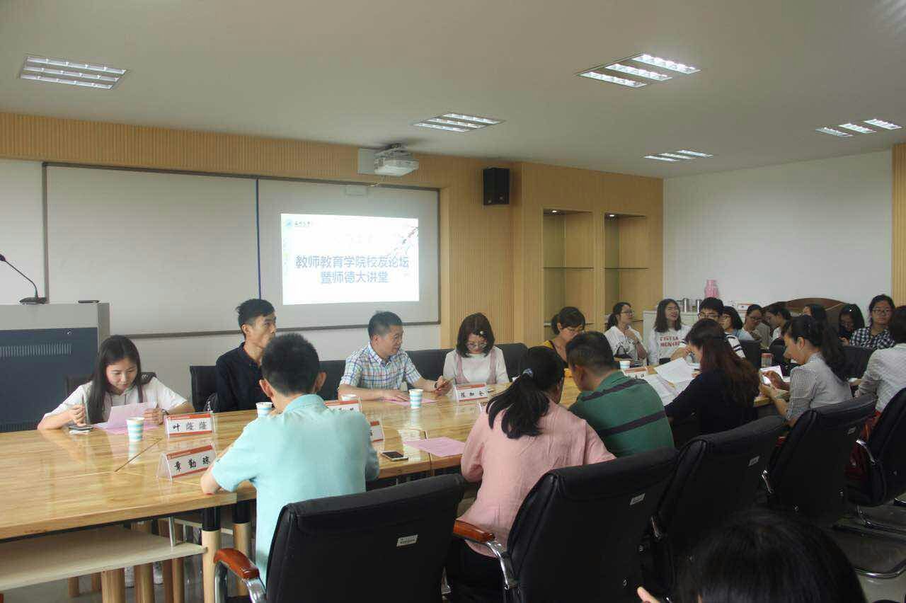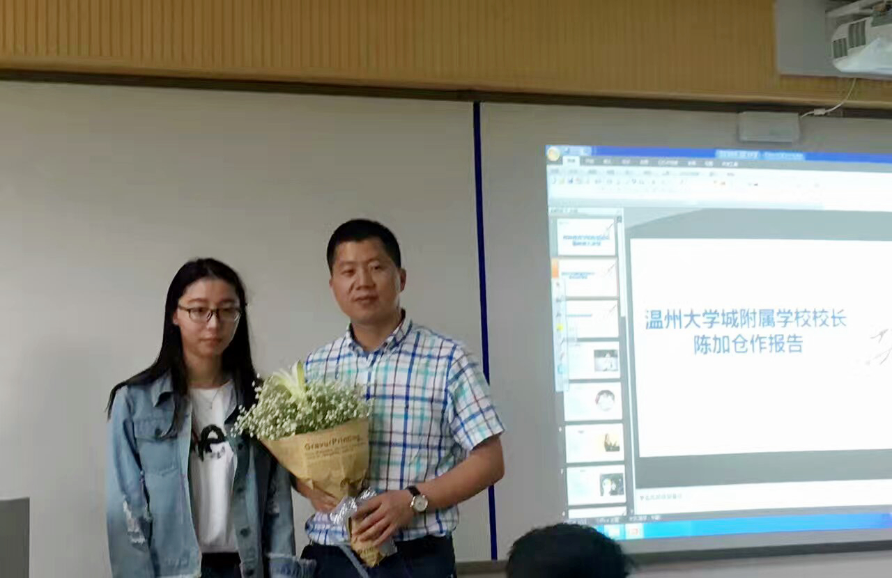 校友论坛暨师德大讲堂活动。参加此次报告会的领导嘉宾有浙江省小学数学特级教师、温州大学城附属学校校长毕业于1993年平阳师范的陈加仓校友、温州大学附属实验幼儿园老师,毕业于2013年学前教育专业的陈学茂校友,东阳市江北小学教育集团茗田校区老师、毕业于2014年教育技术专业的许晶晶校友;温州大学附属第一实验小学老师、毕业于2016年小学教育专业的叶蕯蕯校友,浙江师范大学研究生、毕业于2016年应用心理学专业的陶云瑛校友。学院出席的领导老师有院党总支书记兼副院长杨立淮、院党总支副书记杨丽君、教技系书记李丽、学前系书记陈旭微、小教系副主任章勤琼、学生科严晓秋,以及学院各班学生代表近60人。