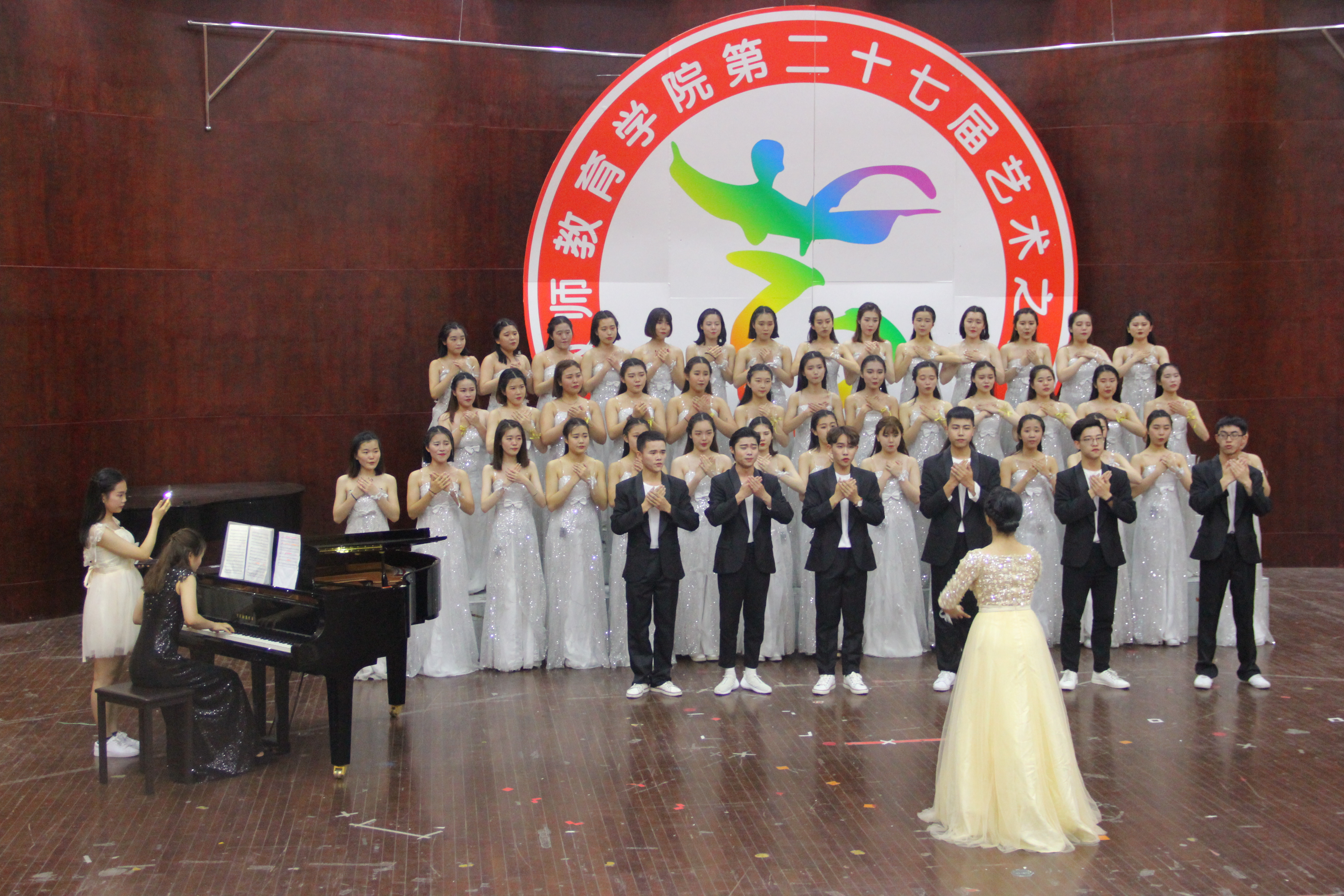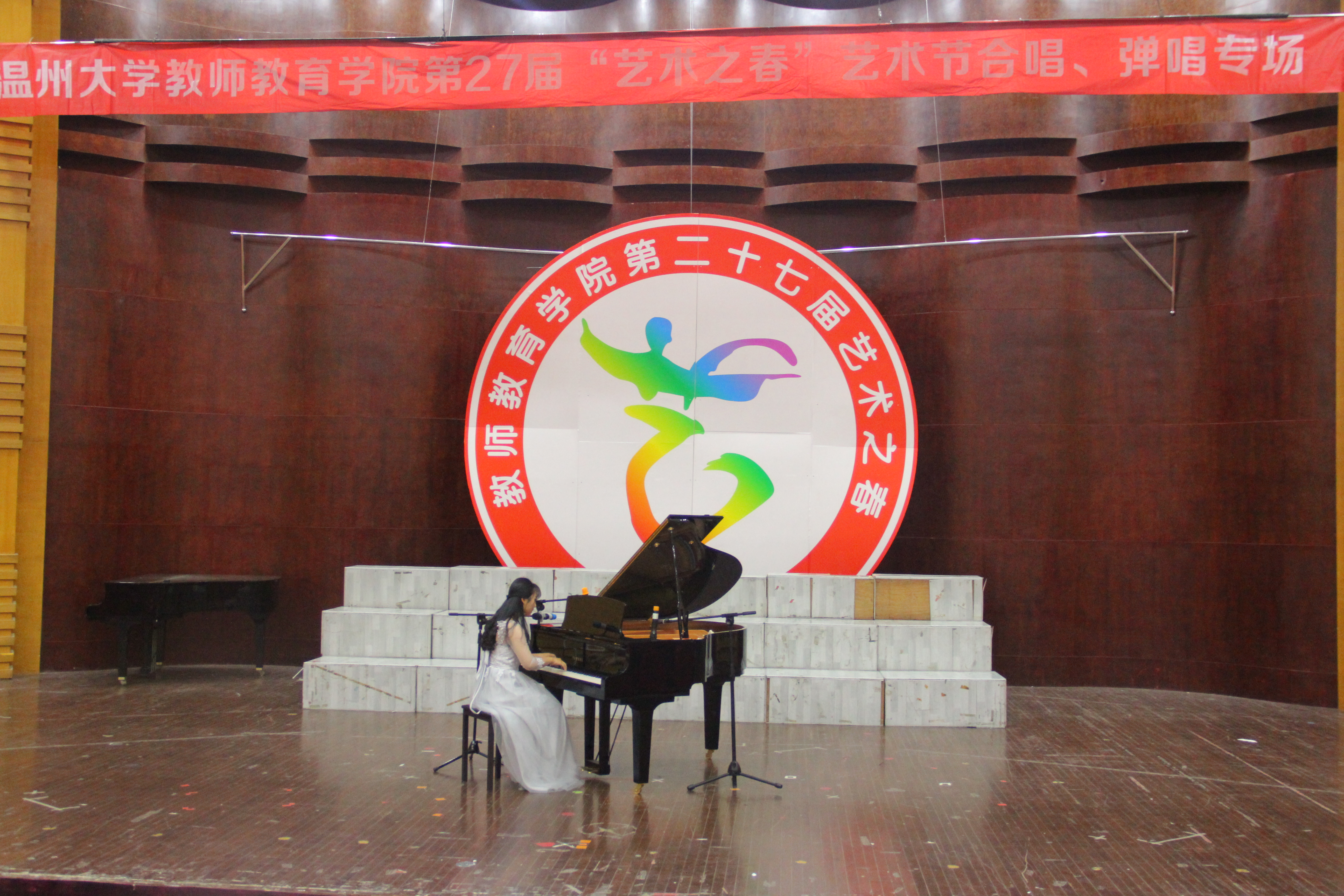 芬芳的五月,校园里鸟语花香,到处都是春的呼唤,到处都洋溢着悦耳的歌声。2017年5月9日晚6:30,温州大学教师成人网站 第二十七届“艺术之春”声乐专场在南校音乐厅拉开序幕。亲临此次比赛的评委老师有教师成人网站 陶陶、翁鲜丽、杨婧、叶熙熙、陈恩清、章伟丹老师。本次声乐专场分为合唱与弹唱两个专场。每个班级的节目都精心准备,精彩缤纷,让我们的双耳聆听了一场声音的盛大晚会。在主持人一段精彩的开场白与评委老师介绍之后,合唱专场比赛正式拉开了序幕。
