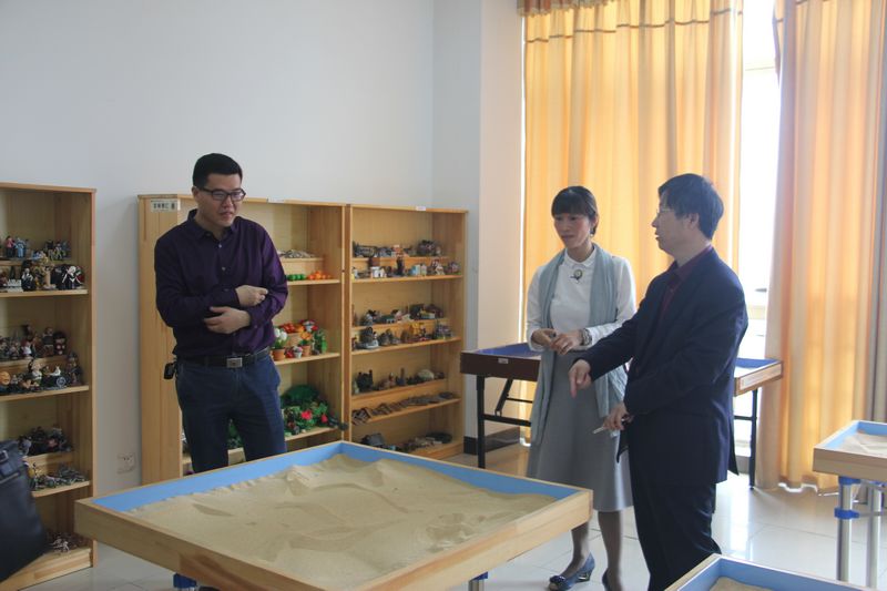 苏教授主要考察参观了教育心理学实验室、虚拟仿真实验室、沙盘实验室、未来教室与书法实验室。参观过程中,胡瑜副院长简要介绍了实验中心的发展思路、建设运行情况及建设成果,苏教授对实验中心先进的设备和教育理念表示赞许,现场与老师们就实验室建设、实验教学等方面进行了深入的交流,并对相关实验室建设提出了宝贵的建议。
