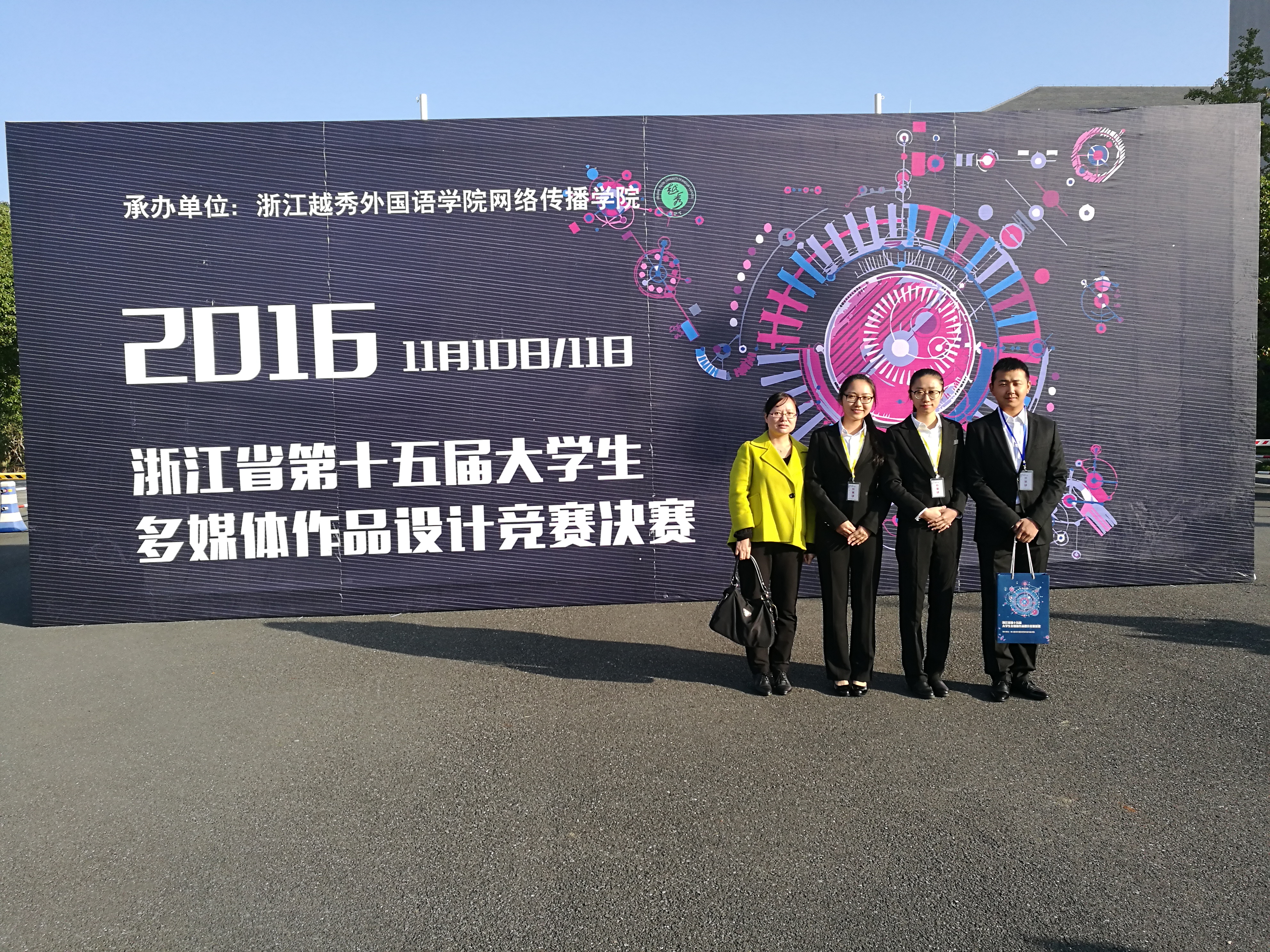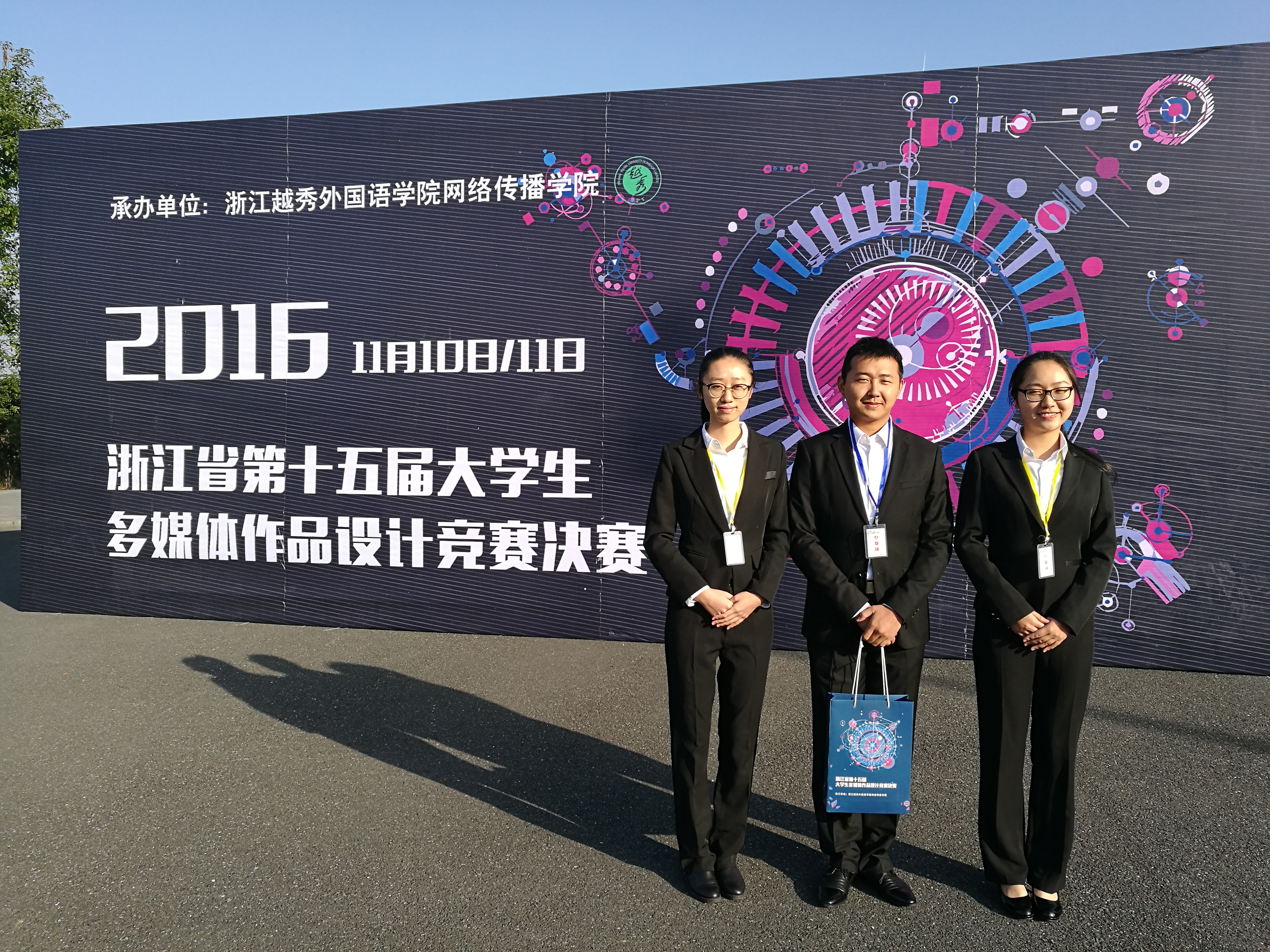 20161111日,浙江省第十届大学生多媒体作品设计竞赛在浙江越秀外国语学院落下帷幕,本届大赛总共收到参赛作品1023件,其中交互式课件67件、微课81件、网站80件、平面346件、动画141件、DV196件、移动应用112件。成人网站 师生参赛队伍经过紧张激烈的专家评审和现场答辩,共有2件获奖作品在比赛中脱颖而出,获得课件组一等奖1项,DV组三等奖1的好成绩。