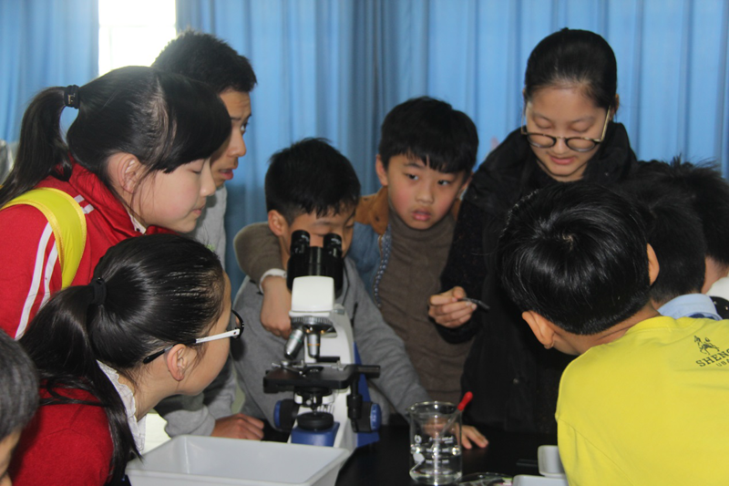我们先根据学生的年龄对小学生分成了四组,让不同年龄的小学生在不同的实验室有选择的介绍、体验。在实验室里,小学生们认真听取各实验室负责老师的讲解,不时提出疑问,踊跃参与,或互动交流。在自然科学室里,他们观察显微镜下的神奇世界;机器人实验室里,他们体验了智能机器人夹取、移动、投篮等运作全过程;在未来课堂实验室,他们体验了先进的教学媒体在教学中的应用,整个活动十分愉快。直到上午11点半小学生们才离开。实验室开放活动有效地利用学校资源,让孩子们体验了各种实验教学仪器,激发了他们对科学知识的兴趣。