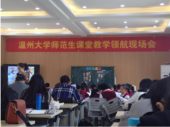 2016年11月2日,全体同学来到了温州大学城附属学校,参加了校方安排的温州大学师范生课堂教学领航活动。与会人员有温州大学城附属学校校长、浙江省特级教师陈加仓老师,浙江省教坛新秀、永嘉县少艺校的李明哲老师,温州大学教师成人网站 周鹤新老师与章勤琼老师,还有大学城附属学校的数学组老师以及13小教数学班的全体同学。在今天的活动中,徐学蕾老师和胡依贴老师带来了两节生动的绘本课《寻找臭屁王》和《国王的新衣有多长》,让同学们感受到了数学课堂别样的魅力。此外还有三节常规课,分别是陈洁老师的《2-5的乘法口诀》、倪洁洁老师《10的认识》和徐滨伊老师的《11-20的认识》,也让同学们受益匪浅。随后,来自永嘉县少艺校的浙江省教坛新秀李明哲老师对这5节课进行了有深度的精彩点评,并作了题为《让我们的课更有“教养”》的专题讲座。让同学们对今天的课有了进一步的认识,感受到今后的教师道路还很漫长,也对小学数学课堂有了更深的体会。之后,陈加仓老师对今天的活动作了总结,表达了希望跟教师成人网站 继续加强合作的意愿。最后,章勤琼老师代表教师成人网站 再次感谢了大学城附属学校对师范生培养的大力支持。