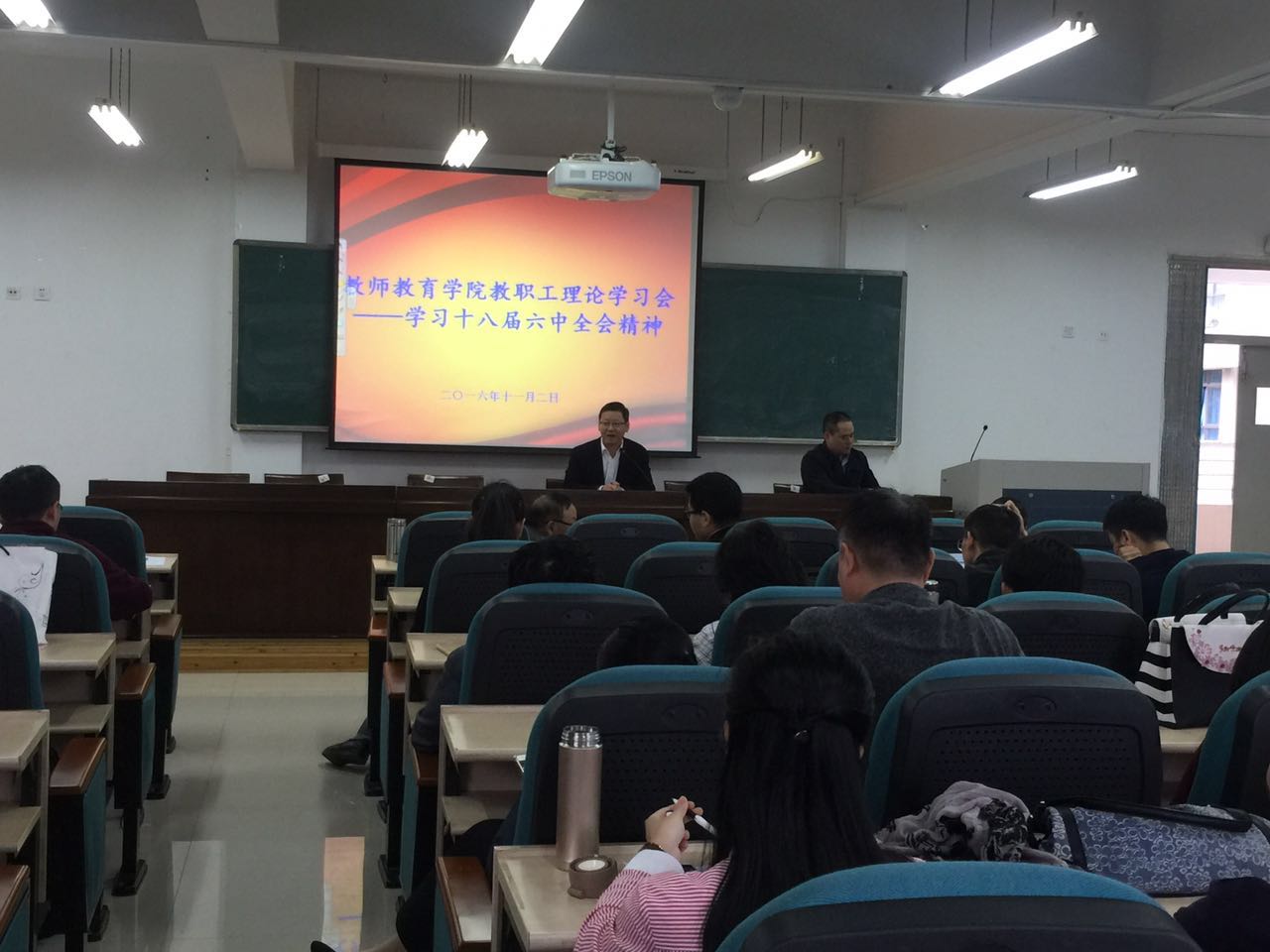 召开了全体教师大会,开展教职工理论学习会,专题学习党的十八届六中全会会议精神。学习会由学院院长、党总支副书记郑信军同志主持。