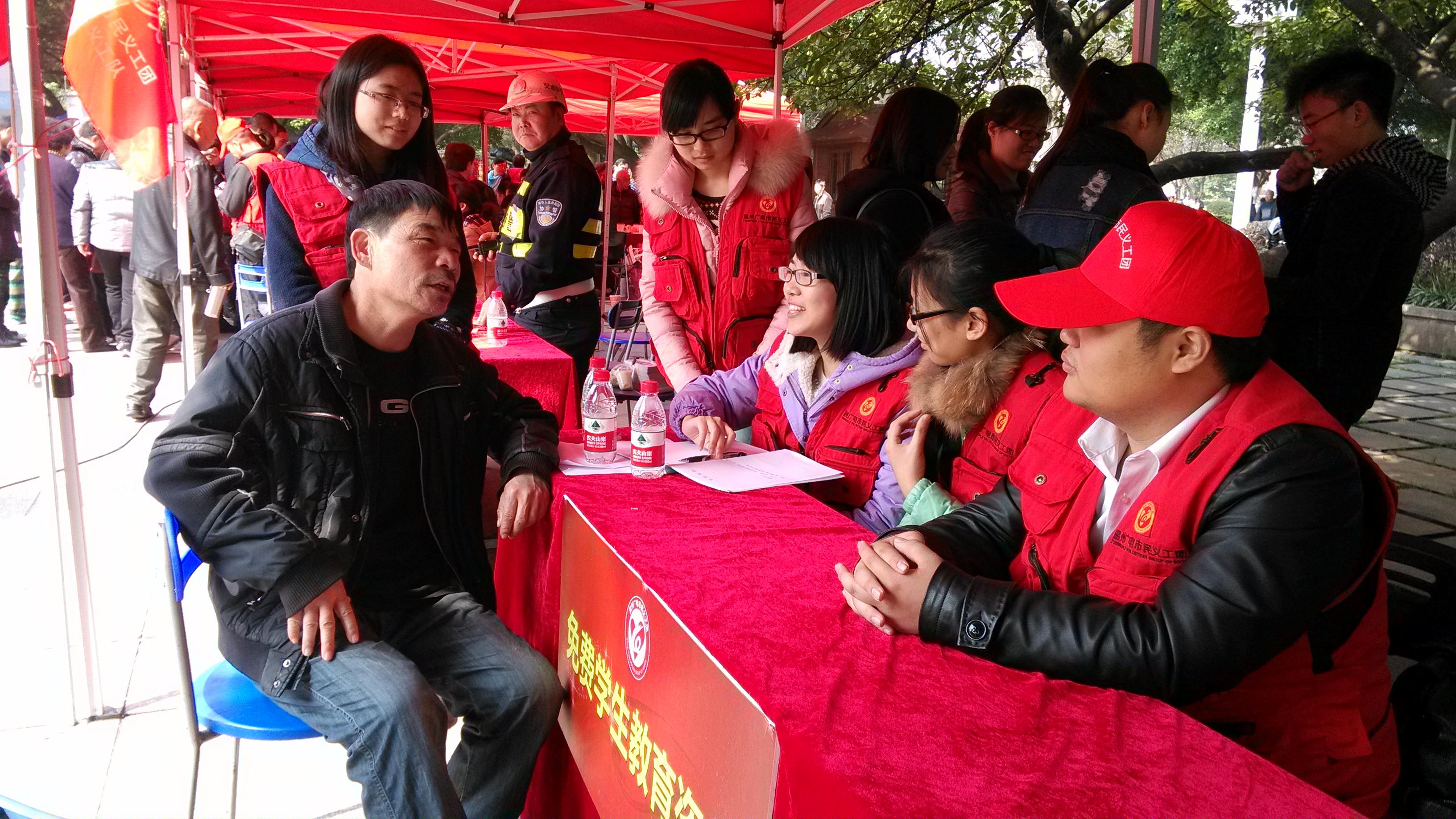 在开幕式结束后,我们在教育支队的展台开展活动,此次活动主要是关于教育及心理方面的咨询事项。我们热情接待每一位来到我们展台的市民,为他们答疑解惑。由于我们的成员都是学生且是首次开展现场咨询,因此大家的经验都不足,所以,经验丰富的陈老师成了我们的主力军。我们在现场就是帮助老师开展咨询,在我们力所能及的问题上也积极为市民解决困惑。这次活动,由于我们大多是学生,来咨询的人不是很多。在咨询的市民中,主要咨询的是孩子的问题和自己的学业再深造问题等。每一个来咨询的教育问题都有其原因,但我们要相信孩子都是好的,对待他们要有耐心,要给他们营造一个温馨的家庭氛围。而关于学业再深造问题,我们鼓励他们,只要自己有决心,一切都能克服的。
