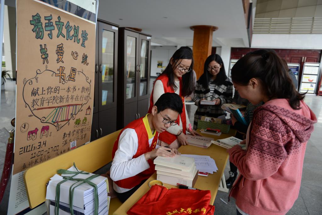 开展了“携手文化礼堂 共筑爱心书库”,在学校教学区和学生生活区分别设点募捐书籍的活动,并将于近日把捐赠的书籍送到乐清市虹桥镇各文化礼堂,用师生的温情和书籍的智慧为虹桥文化礼堂添一份色彩,丰富礼堂文化建设。短短一个下午时间,共收到了师生捐赠书籍500余册。