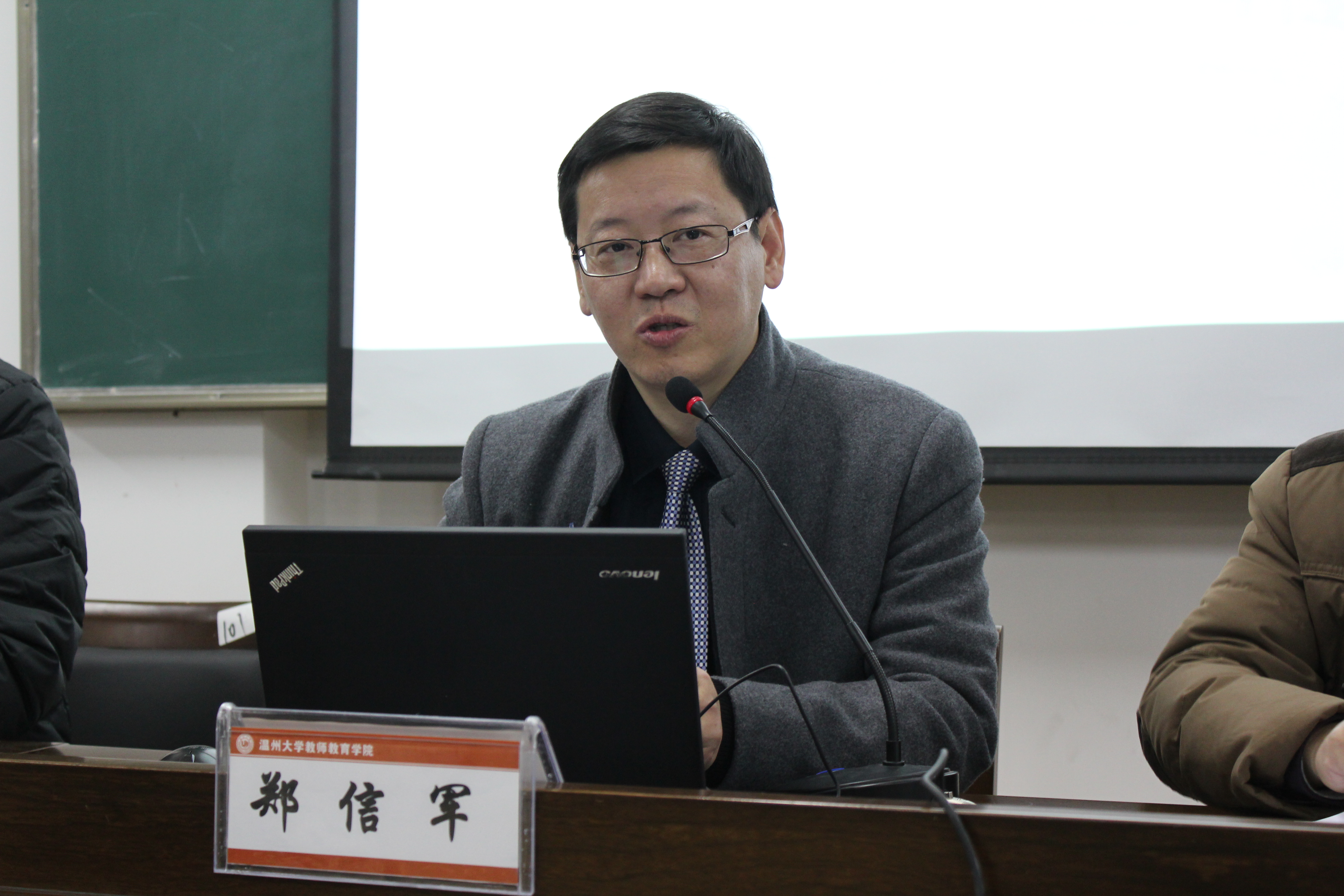 郑信军院长在会上作《学院十二五工作报告》。他总结了学院十二五发展取得的主要成绩。在十二五期间,学院凝练了“博爱雅艺”师范气质,充分体现了学院精神与人才培养理念;顺利完成搬迁工作,改善了办学条件,通过国际合作以及地方服务拓展了办学资源;通过开展“惠生工程”、“全员承诺”、“一部一品”、“做成一件事”等系列活动,加强了以“责任”和“投入”为核心的师资队伍建设;顺利通过校重点A类学科建设项目验收,成功获得教育硕士学位点授权,奠定了教育学科稳步发展的基础;强化了教学过程管理与目标管理,教学业绩考核连续四年优秀,形成了各有特色稳定发展的专业格局;完善了育人自育的体系与机制,构建了以培养“博爱雅艺”师范人才为目标的学风建设体系,塑造了以立德树人为根本任务的学院文化育人品牌,学院党总支连续三次优秀,并获得省高校基层党建工作示范点荣誉,提高了教师教育人才培养质量;通过教师继续教育、基础教育创新行动计划、面向基础教育课题、出版《现代教育》内刊以及儿童剧公演等多方面工作,提高了服务地方基础教育的质量和水平。当然,在十二五期间也存在很多问题和不足,学院师资队伍亟待加强,专业结构不良,人才培养前瞻性有待加强;专业建设水平与人才培养质量亟待进一步提高;学科建设缺乏明确的团队、方向和特色;地方服务缺乏系统规划与有效拓展。十三五期间,学院仍然处于由教学型学院向应用型学院过渡的发展状态,依然处于艰难的爬坡期,是为“十四·五”发展积蓄最大动能的时期,也是学院独立培育办学特色的重要时期。郑院长向各位老师介绍了学院十三五发展指导思想与目标,并说明了十三五发展量化指标。最后,他提出了希望,希望全体师生同心同德、团结协作,坚持育人为先、树人立德,加强师资队伍建设,扎扎实实地以有内涵、接地气、有质量的特色重点项目建设为引领,注重内涵、打造特色,学院才能取得真正意义的发展。