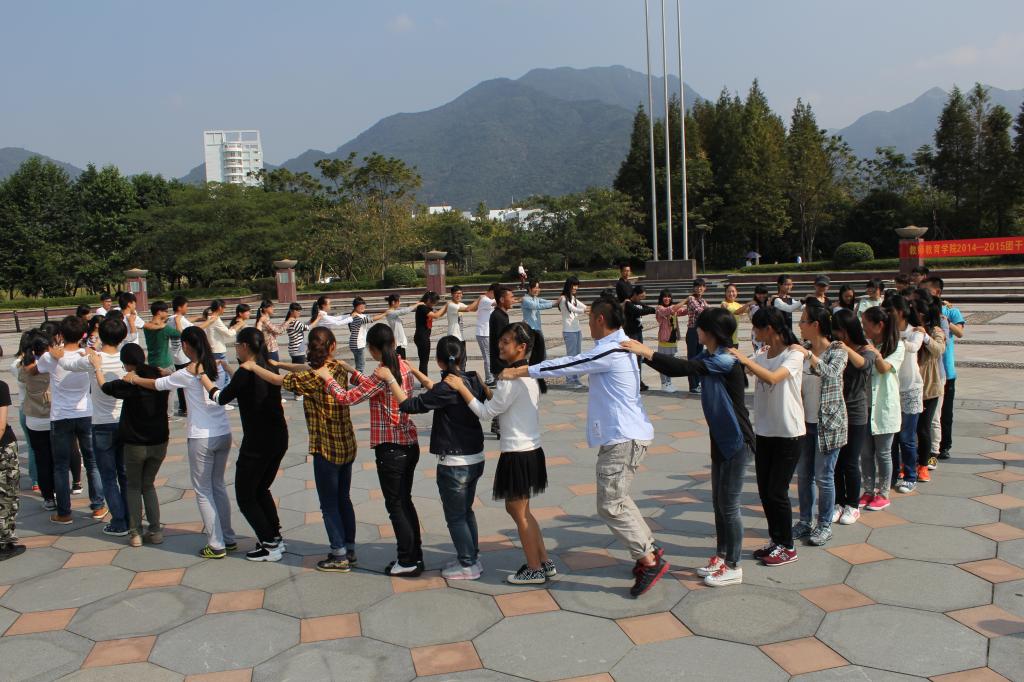 团干培训的开班仪式。当天下午13:30分,在大学生活动中心广场,同学们接受了飞行部落的户外素拓培训活动。在几位导师的带领下,同学们参加了“花开花落”、“生死电网”多个趣味十足的游戏,在游戏中明白了一个团队的协作性和凝聚力的重要性,我们除了成为鹰一样的个人,更要组建雁一样的团队,积极做好团队中的一份子,提升团队整体实力。
