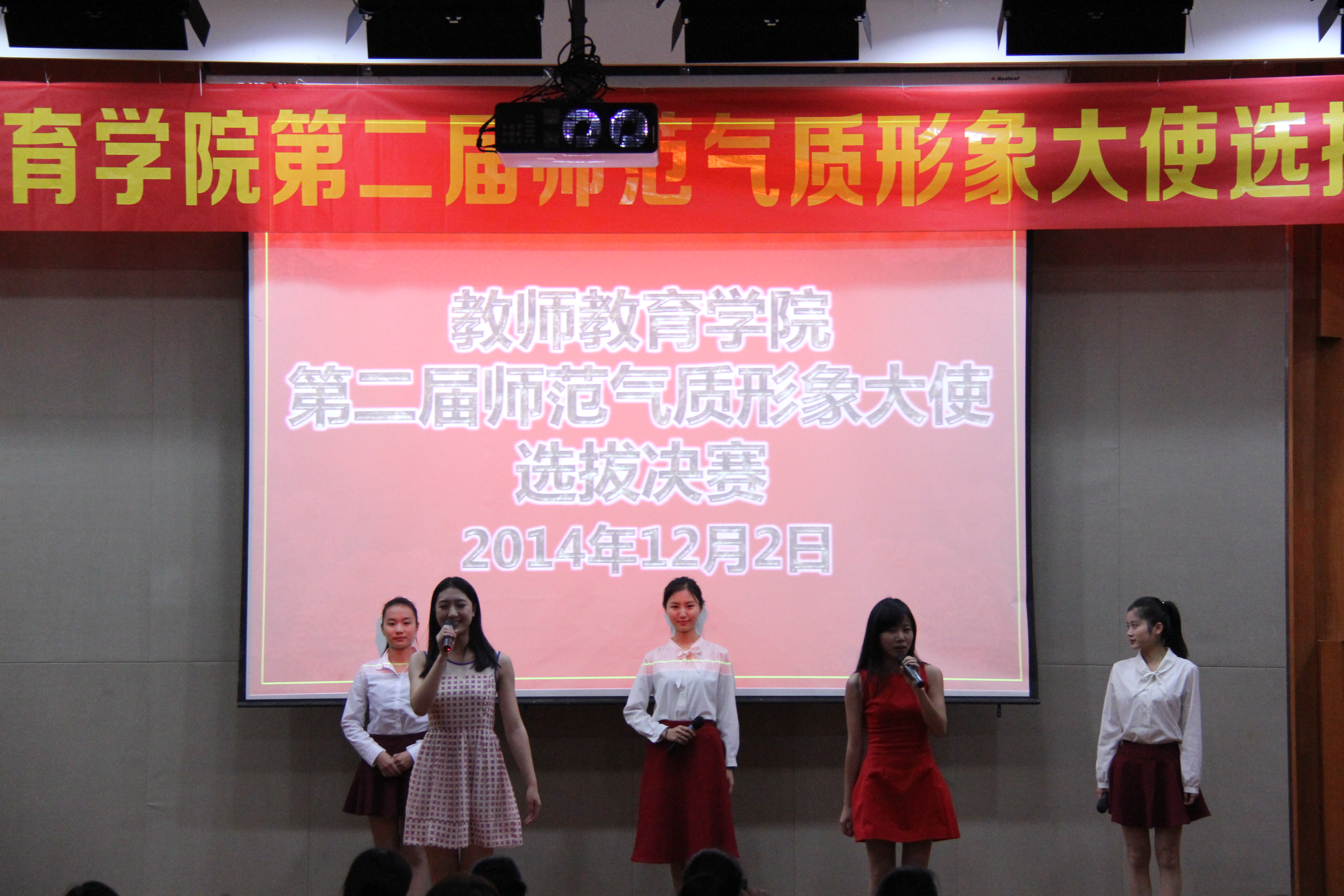 第二届师范气质形象大使选拔决赛在南校雁山厅举行。到场的嘉宾有学院党总支副书记嵇小怡老师,教技系主任张新立老师,小教系书记刘海霞老师,心理系卢佳老师,学前系杨利霞老师,以及来自成人网站