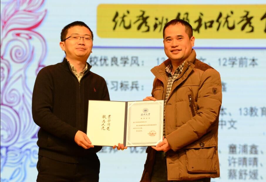 在学科与专业建设、教学工作、学生工作、文化建设等方面取得的可喜成绩,对获奖者和指导老师表示热烈祝贺,也对这些努力进取、爱岗敬业、对学院学校贡献突出的先进集体和个人,表示诚挚的谢意。“世界不曾亏欠每一个努力的人!”,最后郑院长预祝2016年全院师生能坚持奋发图强,再创新的辉煌!为了鼓励优秀老师和优秀学子,随后进行了学风表彰,教师成人网站