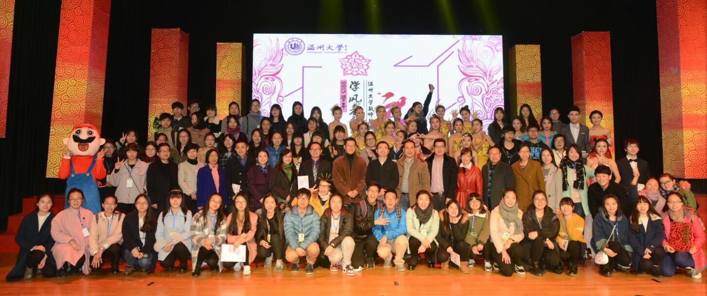 2015年学风表彰大会暨2016年元旦晚会于温州大学育英大礼堂隆重举行。参加晚会的嘉宾有校党委委员、组织部部长方益权老师,校党委宣传部副部长冯方盛老师,校研究生部副部长董新娇老师,校团委副书记熊琳老师,溯初学区党委副书记章志图老师,温州中等幼儿师范学校副校长侯伯念老师,浙江圣邦科技有限公司副总经理姜渊先生,教师成人网站