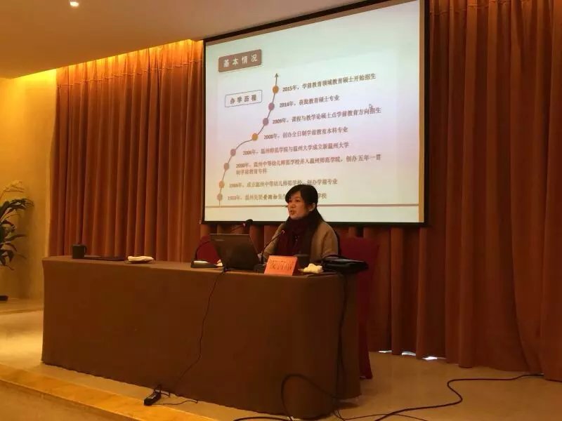 本次会议主题为“追求卓越:小学教师、幼儿教师培养的机遇与挑战”,相关汇报主要集中在会议的第二天,由成人网站 彭小明副院长主持。大会的四场交流报告——《幼儿园教师卓越性的不懈追求》、《师德·师能·师艺并重——小学全科教师培养个模式的创新与实践》、《以儿童剧为载体的学前教育专业课程整合的改革与创新》和《新办本科专业建设的实践与思考》分别由浙江师范大学杭州幼儿师范学院院长秦金亮教授、杭州师范大学成人网站 院长童富勇、温州大学教师成人网站 杨婧副教授、平湖校区顾群教授承担,介绍了各自学校近年来专业建设的思路和成果。
