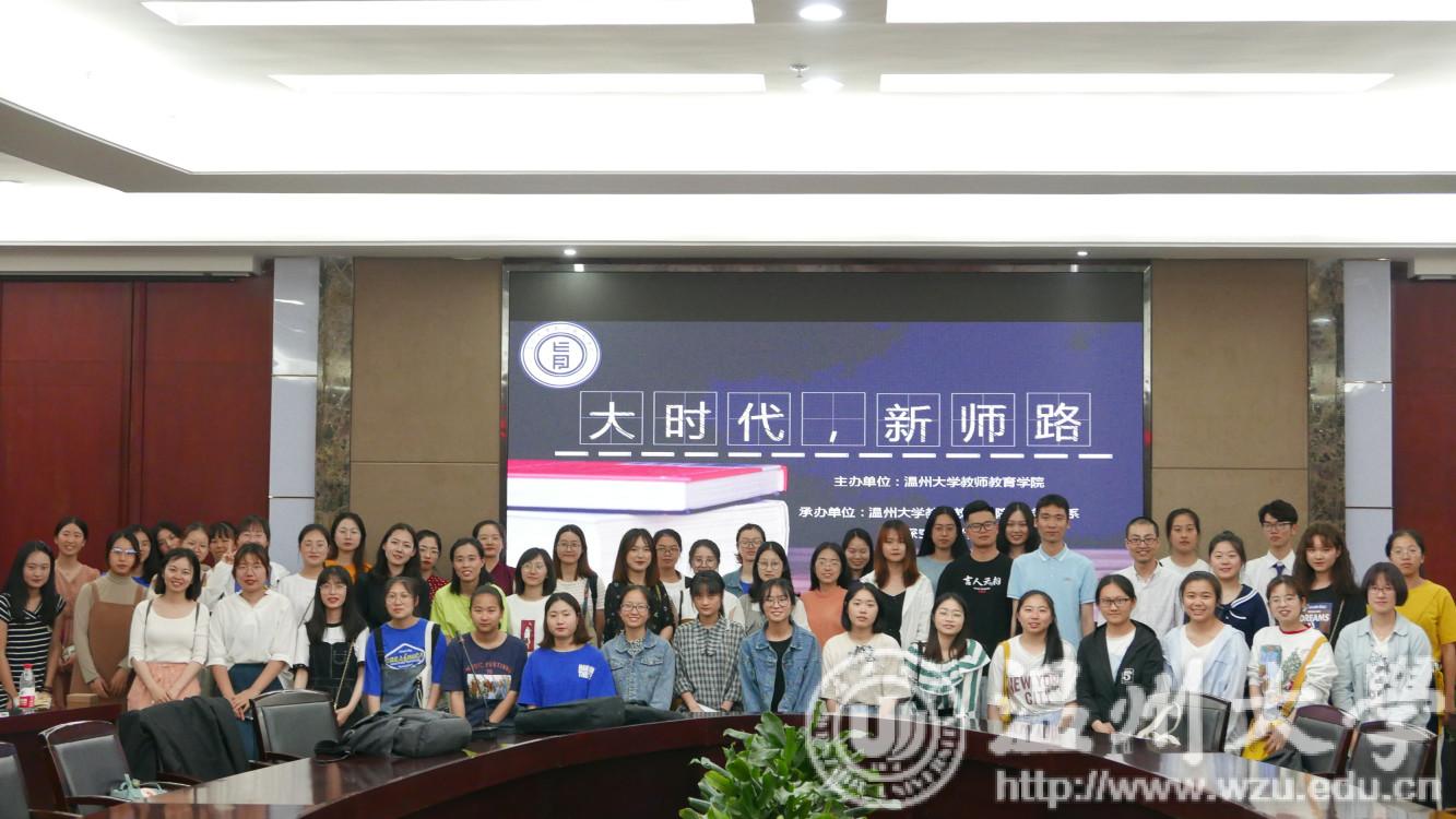 2019年5月25日13:30,在这惠风和畅,万物并秀的时节,大时代•新师路---2019教师成人网站 学长课堂活动在温州大学岩松堂白鹿厅隆重举行。本次学长课堂由教师成人网站 主办,小学教育系和科探空间工作坊承办。到会的学长有毕业一年的新手教师和毕业多年的优秀教师,他们将与教院学子一起聚焦“大时代背景下的新教师成长之路”。