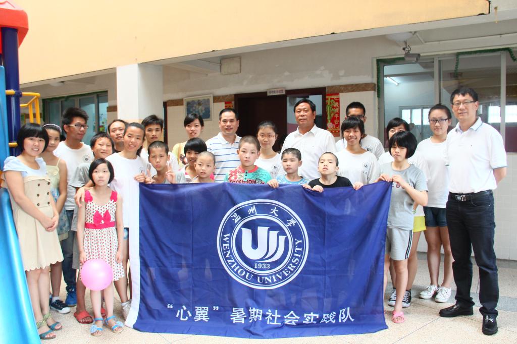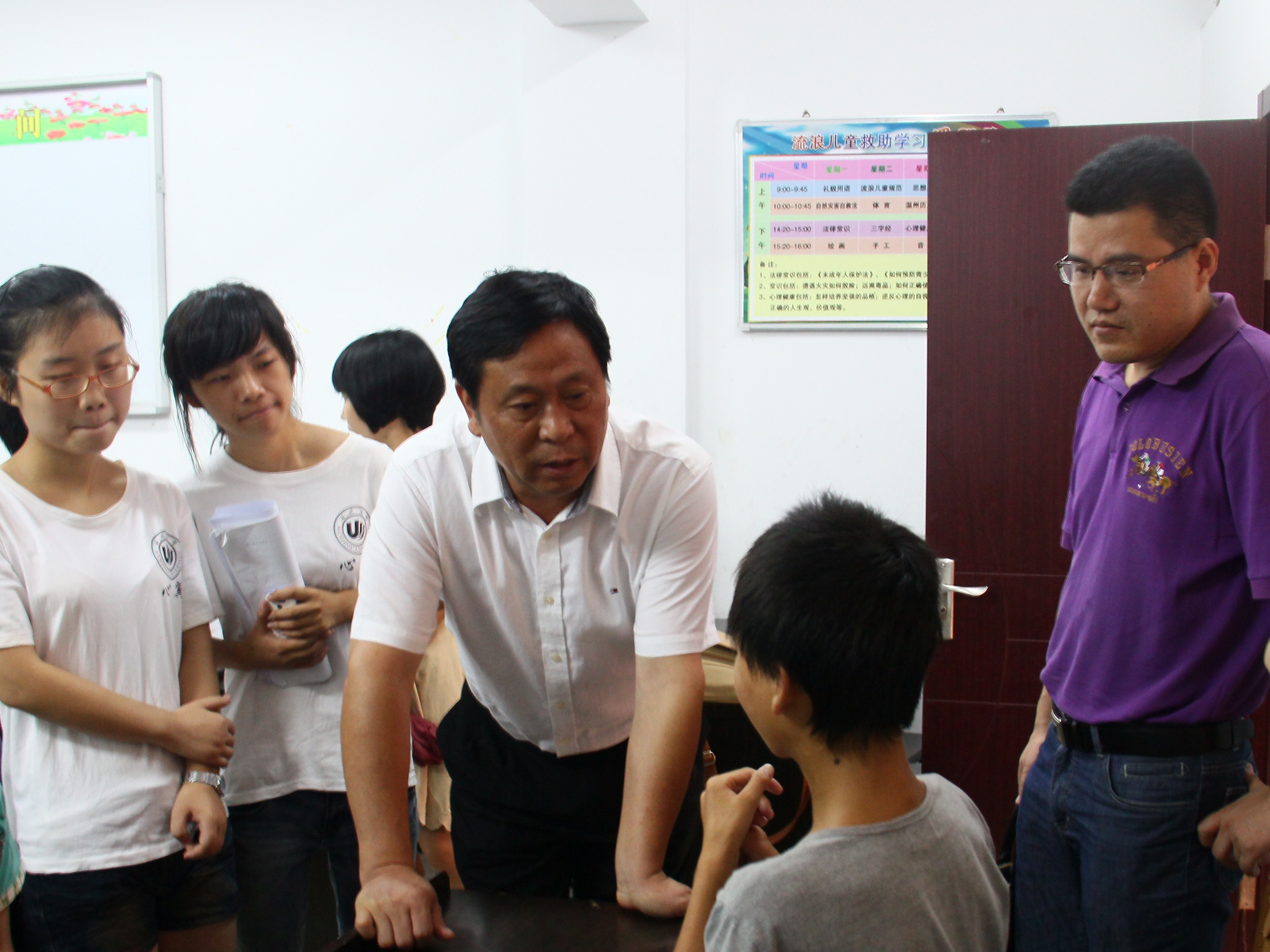 2013年7月15日,温州大学“心翼”暑期实践队来到温州市救助站开始第九天的支教活动。9时许,温州大学党委书记陈福生,校团委书记杨立淮,教师成人网站 党总支书记蔡联群等领导与其他老师一行莅临教师成人网站 “心翼”实践点——温州市救助管理站,亲切慰问“心翼”暑期社会实践队。