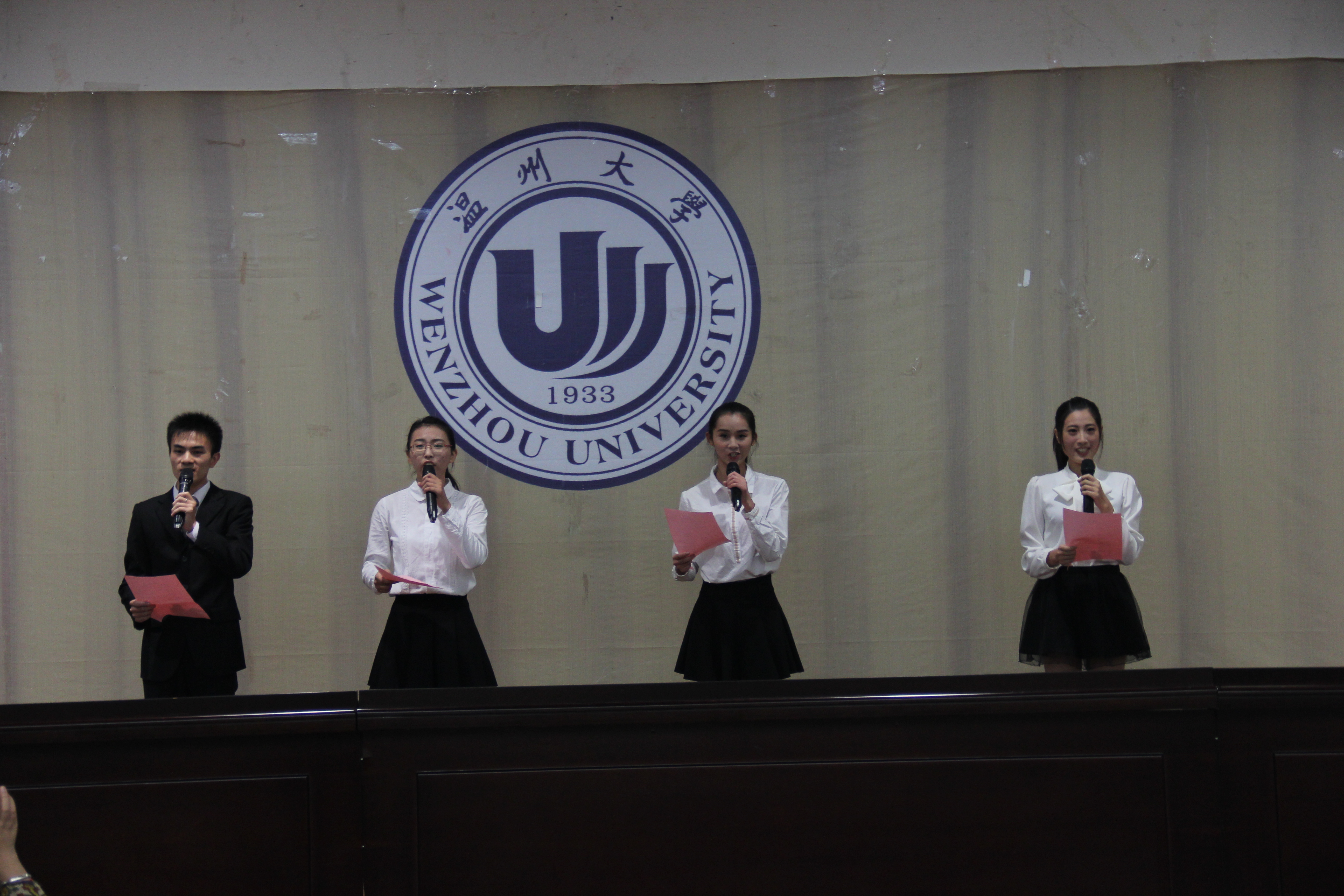 语言艺术工作坊的同学带来的诗朗诵《我骄傲,我是一名教师》拉开师范气质节的序幕。他们用饱满的精神,激情地朗诵给在场师生带来了深深地震撼。学院自2012年开始“师范气质”凝练和核心词提炼工作,全院师生、校友集思广益,确定了“博、爱、雅、艺”四个词作为学院“师范气质”核心词。开幕式上全体师生一起回顾首届师范气质节的精彩活动,并进一步了解第二届师范气质节的特色活动。本届活动以“博”、“爱”、“雅”、“艺”四个篇章开展“博学笃志,睿智人生”大学生科技创新活动、“最美师范情书”征集大赛、“培育气质 追求卓越”第二届师范气质形象大使选拔赛、“阳光教育 师生同乐”温州大学教师成人网站