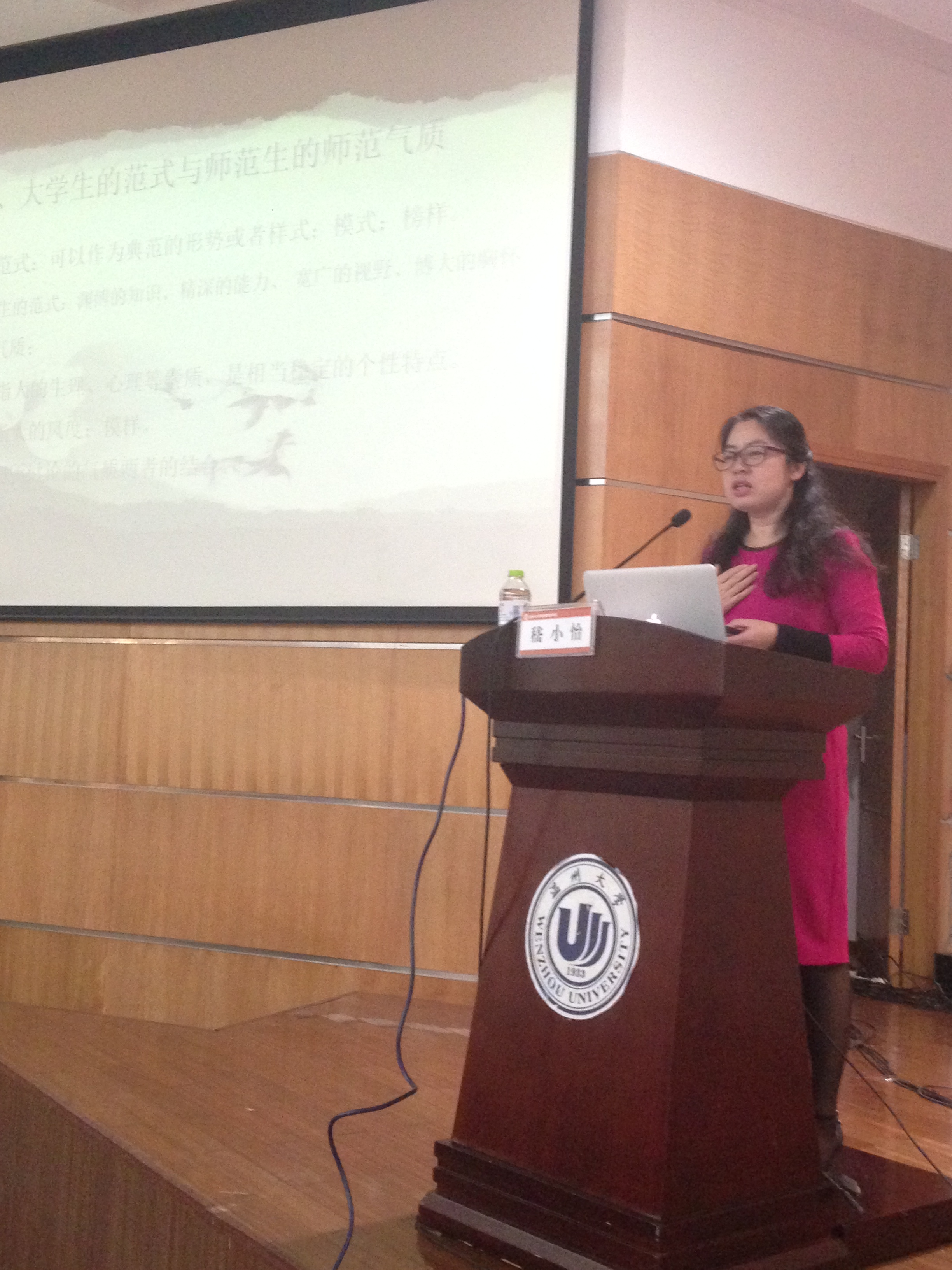 2014年11月10日晚上,温州大学教师成人网站 第二届师范气质节开幕式暨“美丽青春行、幸福教师梦”讲座在北信报告厅隆重举行。本次活动出席的领导和嘉宾有学院副院长孙芙蓉、党总支副书记嵇小怡、学生科副科长陈秀雅、辅导员老师严晓秋,以及各班学生代表近280余人。