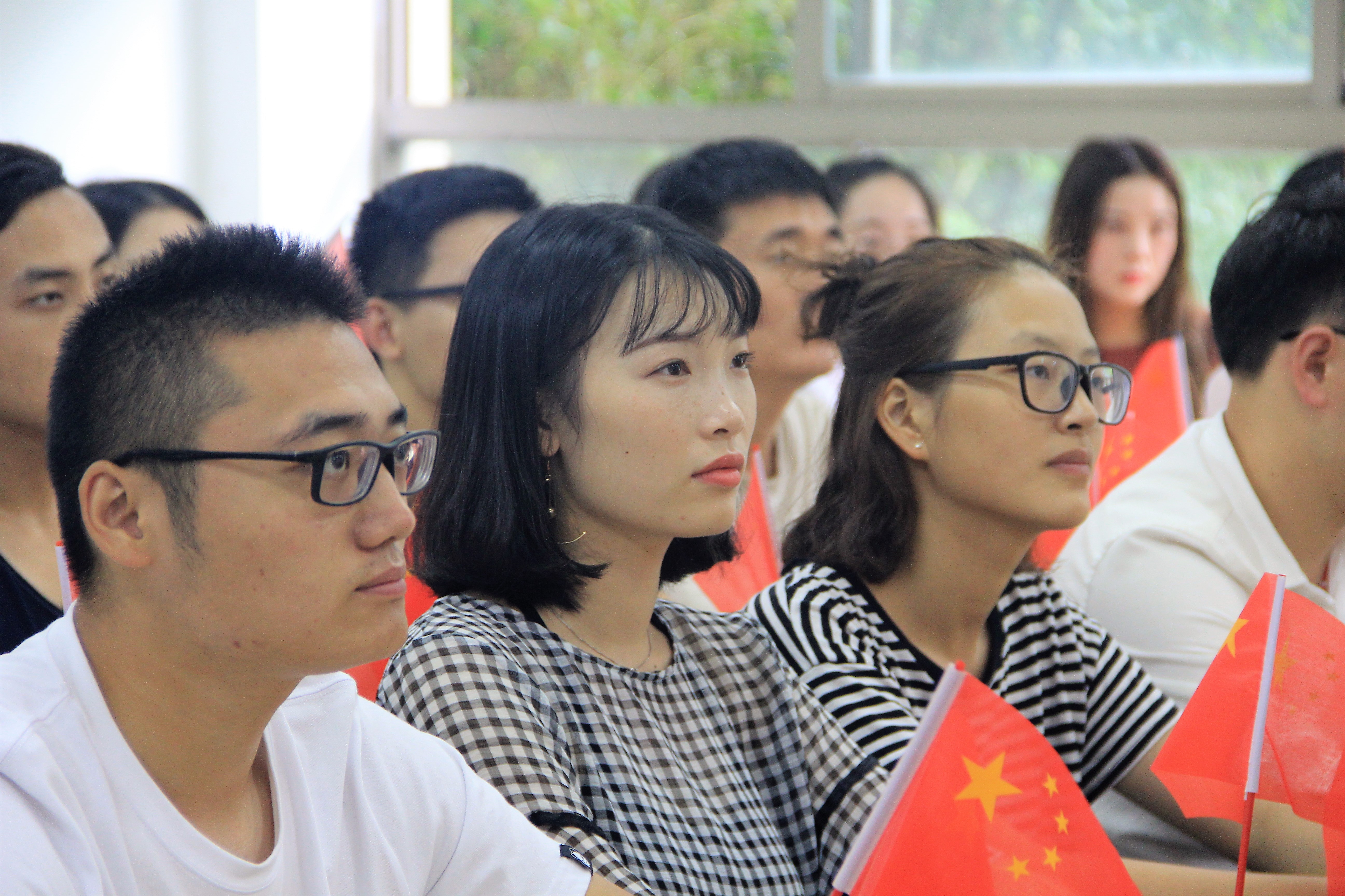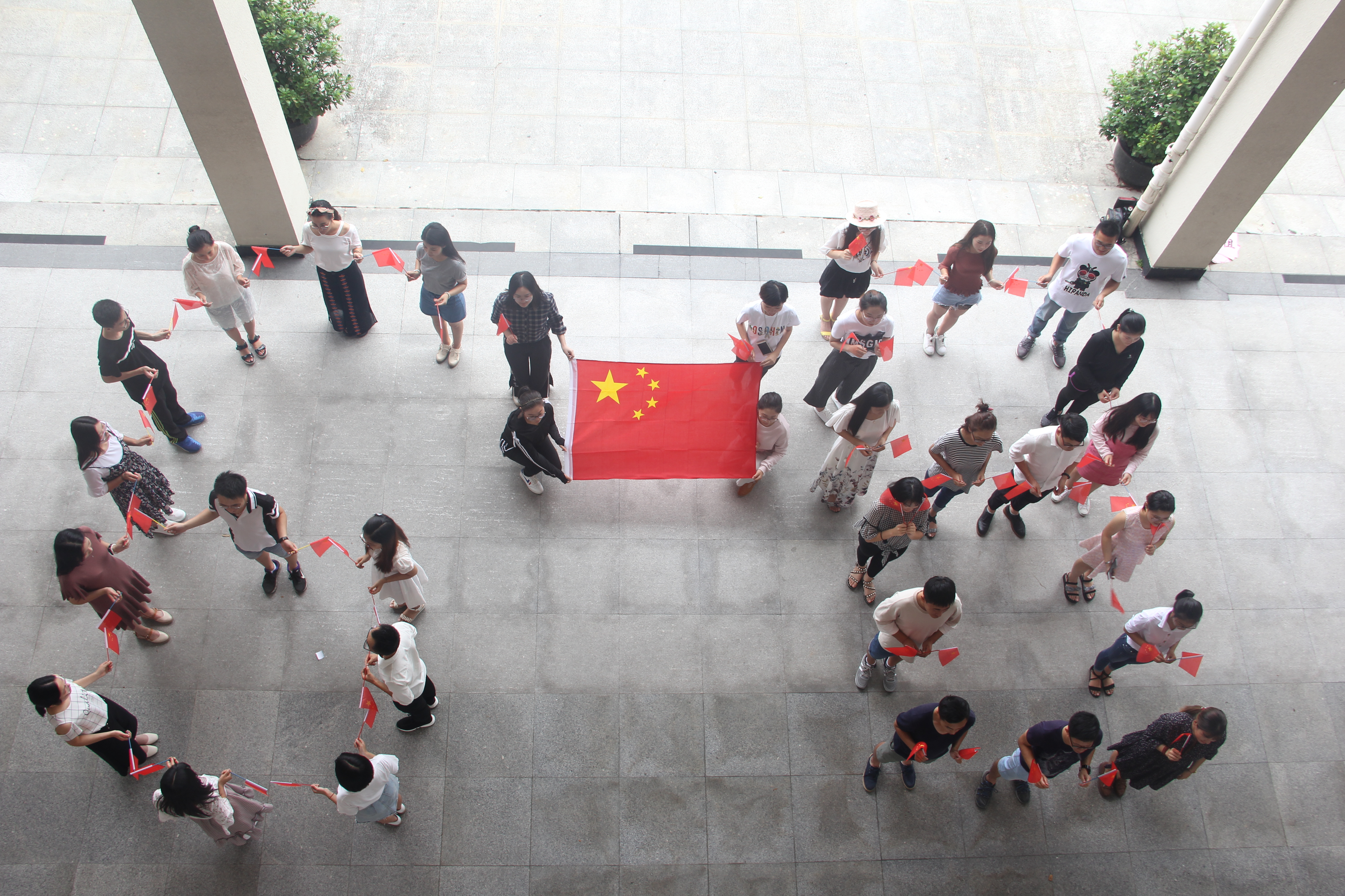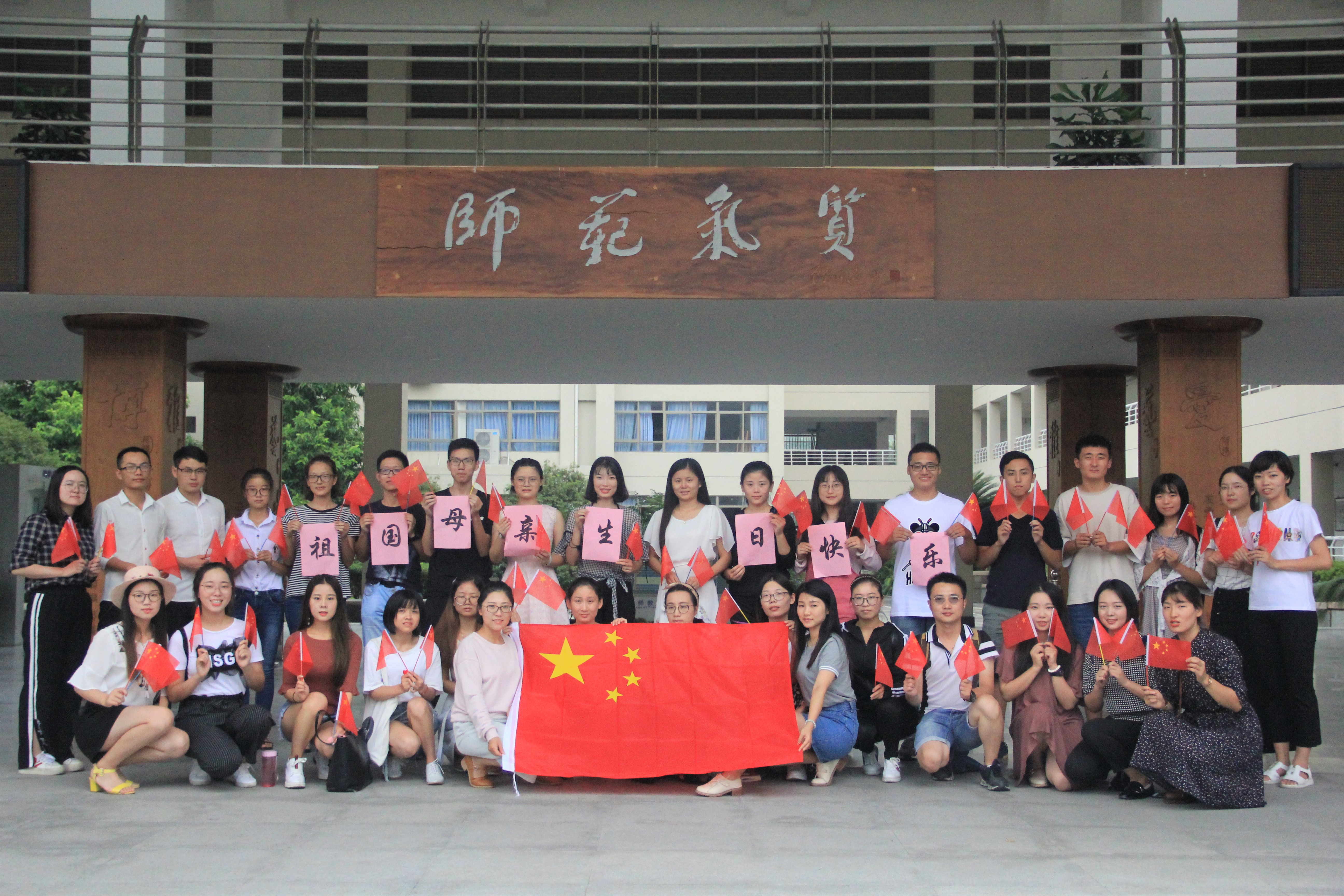 在这最庄严的时刻,大家一起用自己最洪亮最动人的声音一同吟唱了国歌。这首歌是慷慨激昂,催人奋进!大家伴随着国歌,心中的爱国感情也油然而生。大家自发的在教院门口一同为庆祝祖国母亲的生日拍下一张张富有意义的照片。