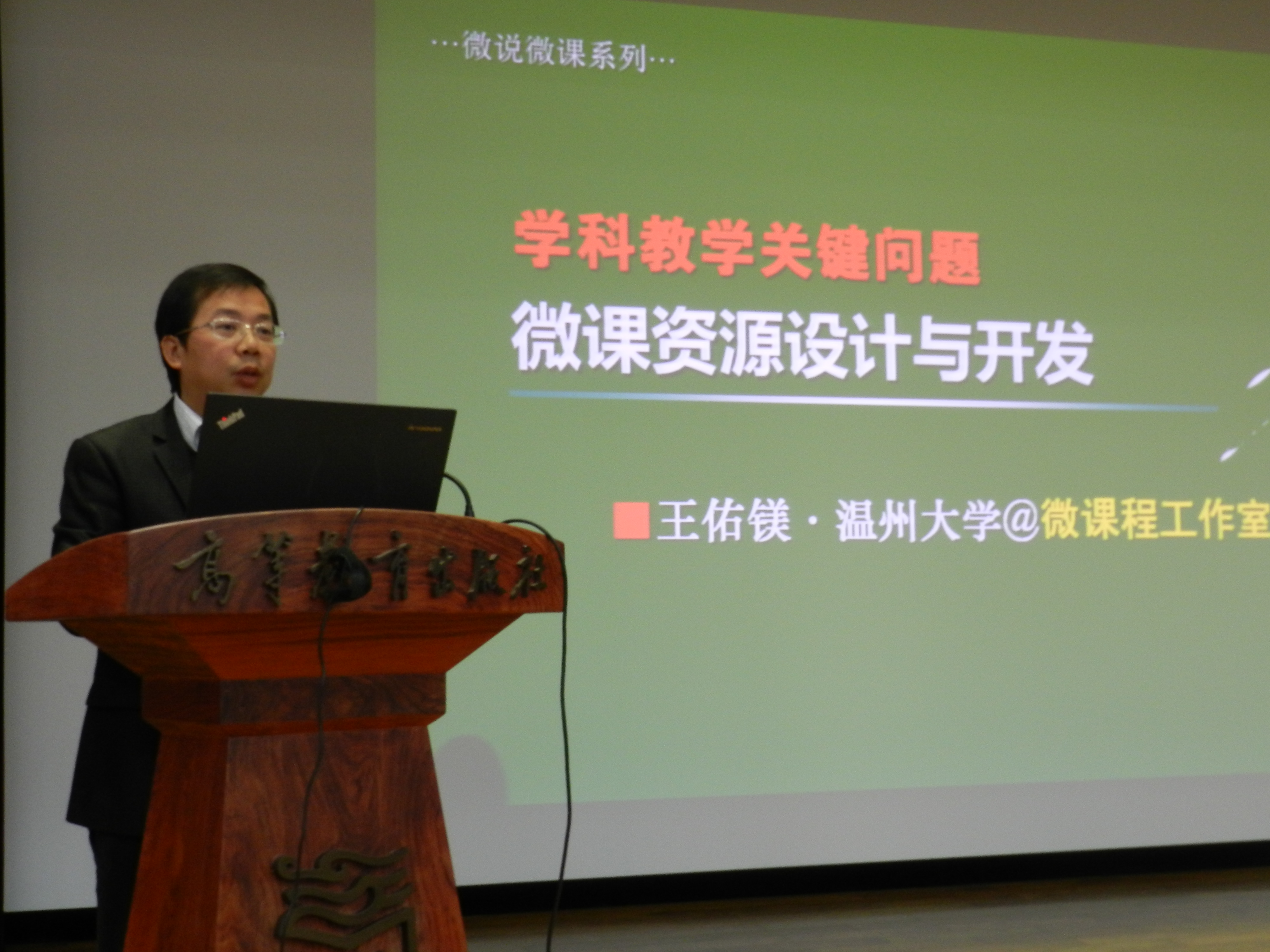 教育信息化研究所王佑镁教授为与会者培训《学科教学关键问题微课资源设计与开发》。在报告中,王佑镁教授认为本项目的资源开发应该走出一般微课设计开发的桎梏,要从数字化阅读视角开发适应教师专业发展的新型教材资源;王佑镁教授针对该项目配套教材的数字化、立体化资源建设需求,提出了O2O的数字化教材开发模式,并就其中通过二维码获取的微课视频资源的设计与开发进行了详细的分析和阐述。报告观点新颖,操作性好,针对性强,实用性高,得到课程中心和秘书处的高度认可,得到与会专家学者的普遍认同,认为本报告为该项目教材资源的后续开发提供了可参照的建设思路和具体策略。课程中心表示,后续将继续与王佑镁教授深度合作,共同推荐新型教材资源的开发。