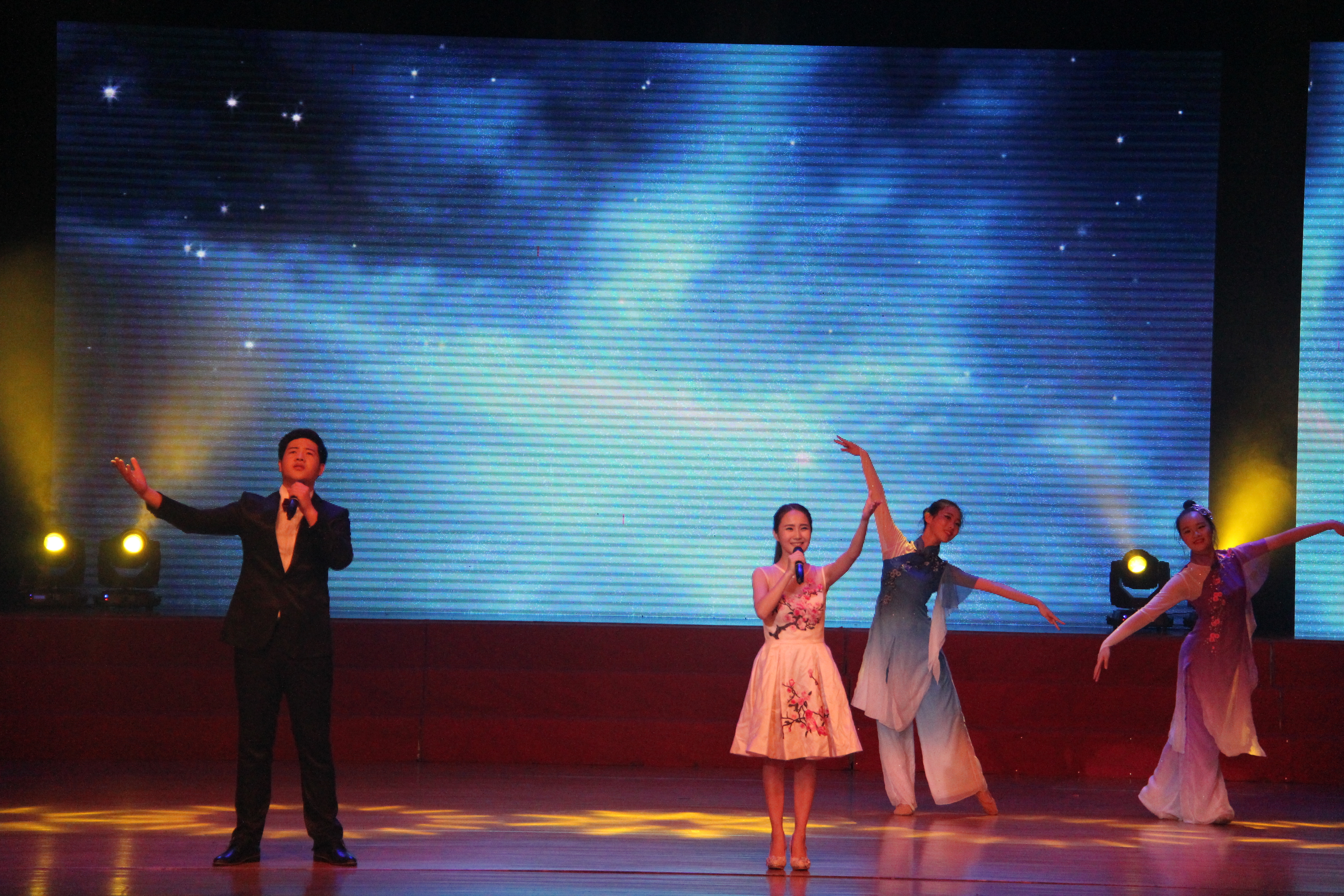 院长郑信军、副院长胡瑜、党总支副书记杨丽君,以及学区、学院师生代表近1000余人。经过前期的激烈角逐和后期的精心整合,各大专场的优秀节目强势回归,共有12个节目参与汇演。同时,书法专场、美术专场的优秀作品也在汇演现场展览。