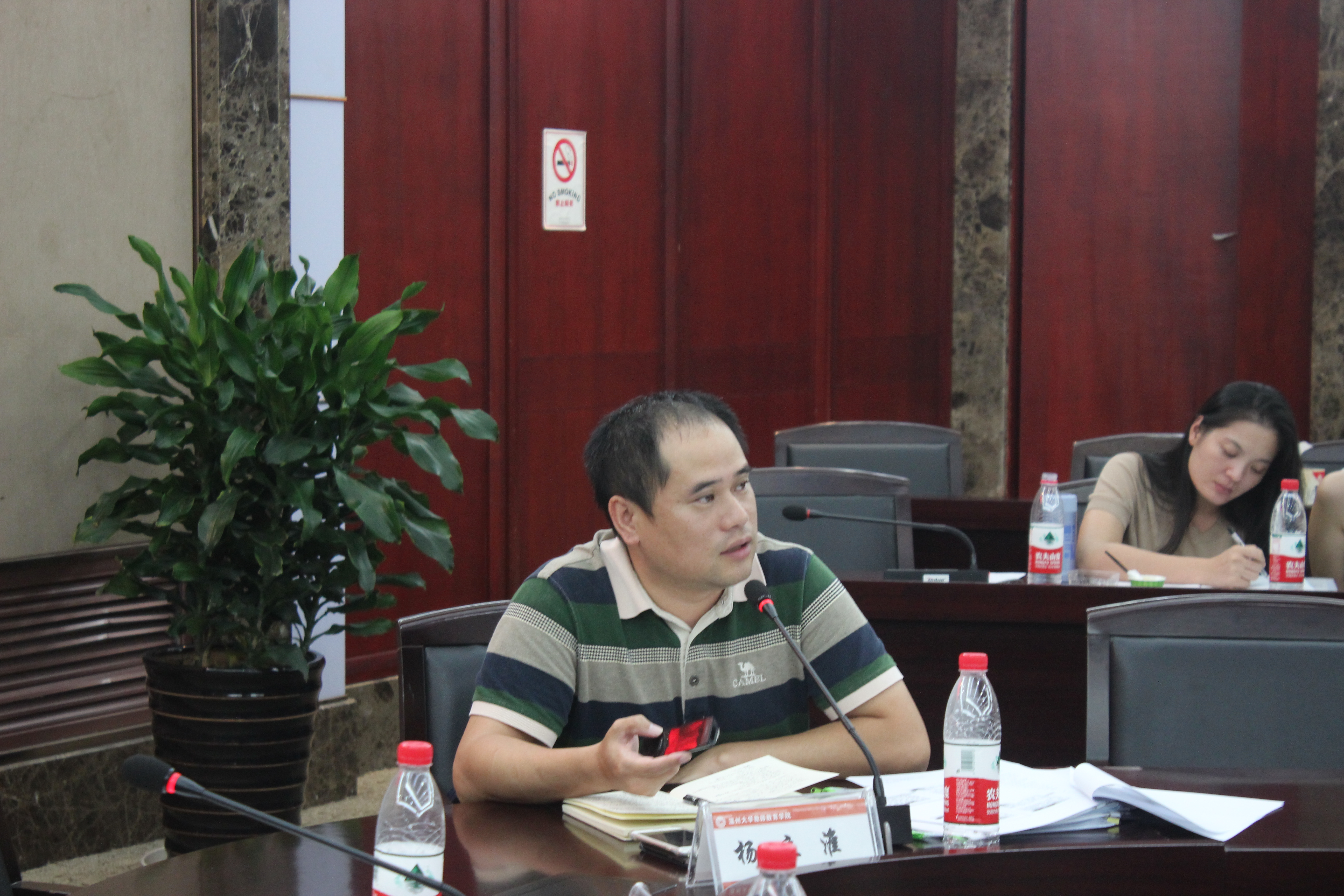 会上,潘玉驹部长结合全国全省高校思政工作会议分析强调了新形势下高校思政工作和党建工作的重要性,并为与会老师作《推动课程思政的依据与策略》的辅导报告。潘部长提出了课程思政的三个依据:“课程育人功能的本质体现”、“思想政治教育实教的迫切需求”、“解决知识教育与思想政治相脱节现象”。针对实现“课程思政”的策略,潘部长指出,我们思政工作者应当坚持同向同行、增强课程思维同时不忘强化价值引领;指出“课程思政”对高校教师提出了要发挥好课堂教学主渠道作用,彰显了高校育人价值的要求;广大教师要做好课程教学与育人相结合和渗透工作,发挥“课程思政”师范课程的示范作用。