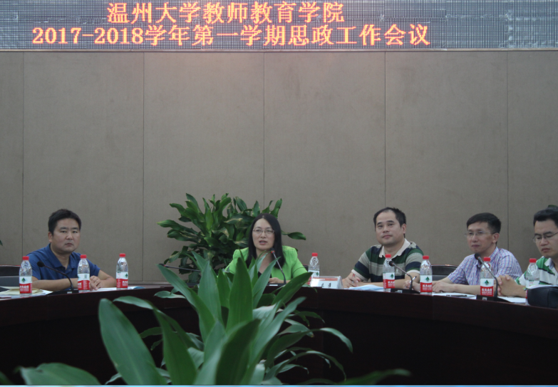 9月13日,教师成人网站 在白鹿厅召开学院2017-2018学年第一学期思想政治工作会议,校党委委员、宣传部部长潘玉驹,教师教育学院党总支书记杨立淮,党总支副书记杨丽君,学院各系(中心)主任、书记,各科室负责人、学院全体辅导员和班主任70余人参加会议。