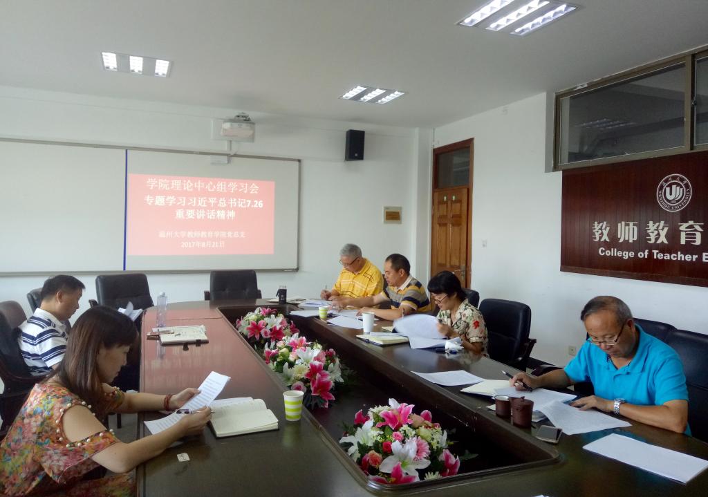 召开学院理论中心组学习会,专题学习习总书记7.26重要讲话精神。会上,党总支书记杨立淮就习总书记讲话的时代背景和重要意义作了深刻的阐述分析,结合人民日报的评论,强调“旗帜引领方向,道路决定命运”,党的十八大以来的五年,是党和国家发展进程中很不平凡的五年,以习近平同志为核心的党中央牢牢把握中国特色社会主义这个主题,统筹推进“五位一体”总体布局,协调推进“四个全面”战略布局,党和国家事业发生历史性变革、取得历史性成就。现在新的历史起点上,我们要更加紧密地团结在以习近平为核心的党中央周围,进一步加强政治意识、大局意识、核心意识、看齐意识,不忘初心、继往开来。