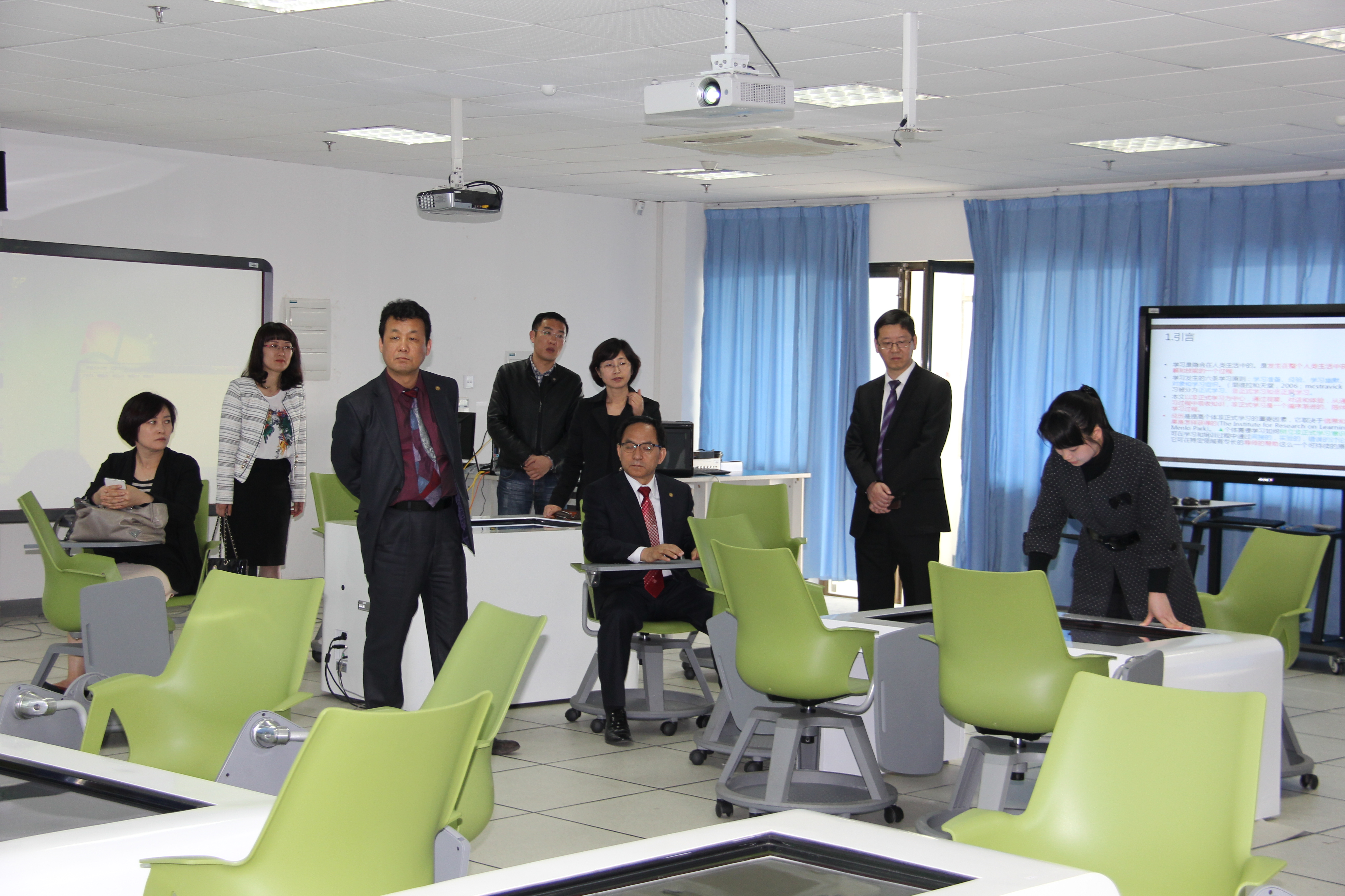教师教育实验中心。在未来教室实验室里,韩国客人对未来教室先进的仪器设备和教育理念所吸引,并就未来教室的使用方法和未来设想展开了较为丰富的讨论和交流;在书法实验室,李在熙校长兴趣盎然,手握毛笔,挥笔写下“空山”二字。他们对实验中心精良的仪器设备和优越的教学环境颇为赞赏。