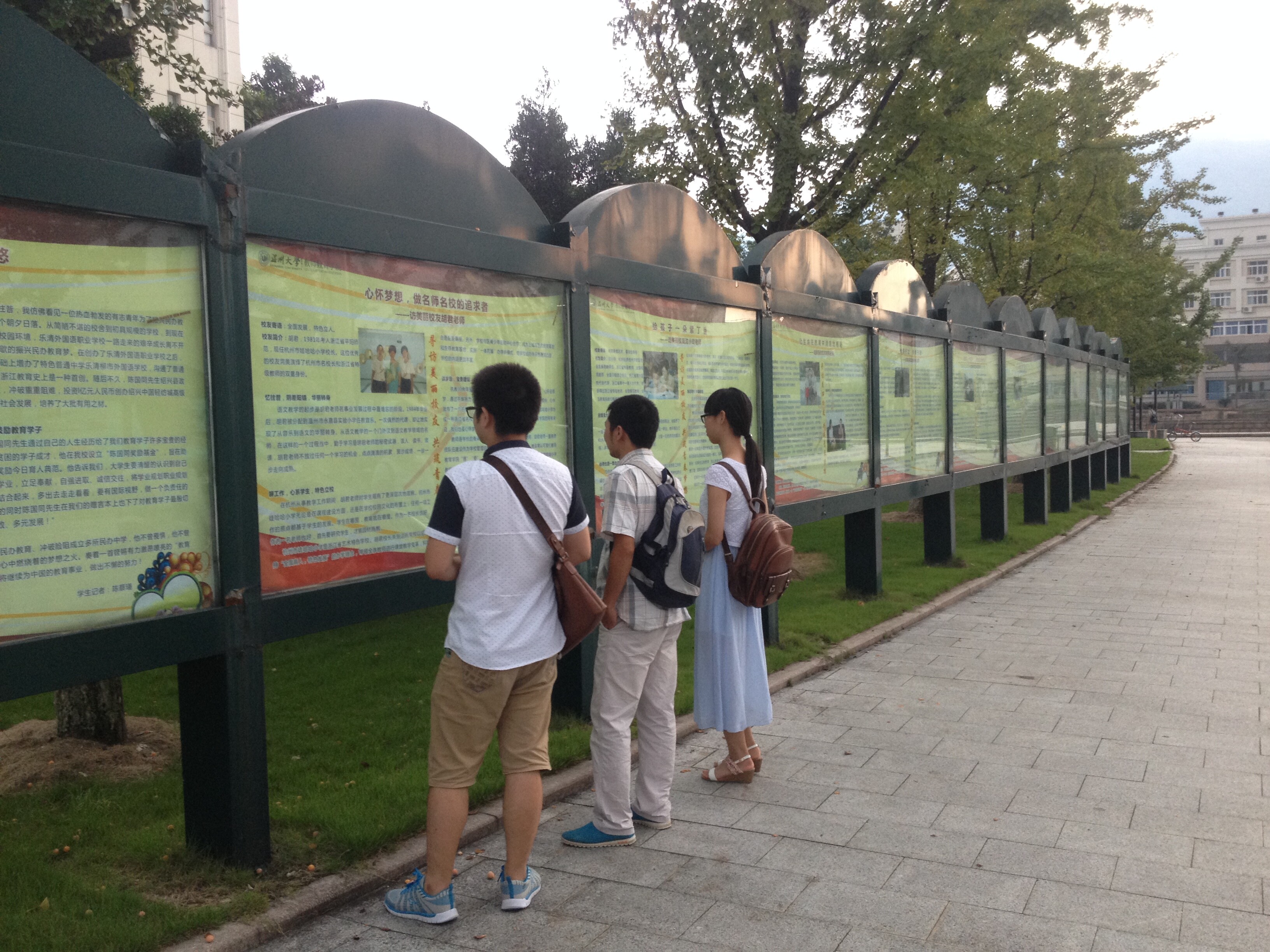 “访美丽校友 筑青春梦想”暑期实践队寻访陈国同先生、胡君校长等52位校友事迹。展出内容主要包括校友寄语、校友简介和校友事迹等,从教育理念、教学模式、学校特色培养等,收获优秀校友多年来在教育事业上打拼创新的实践成果。每一位校友身上都蕴含着鲜明的师范气质,每一位校友背后都有一个鲜为人知的故事,每一个艰苦卓绝的成长历程都激励着同学们前行。 校友,乃同校之友,在校成长,对校回馈。带着年轻的梦想,趁着年轻,勇敢追梦,让教育之花绚丽绽放。愿每一位教育学子成为多年后的优秀校友,青春如梦,携手同行,有你有我!