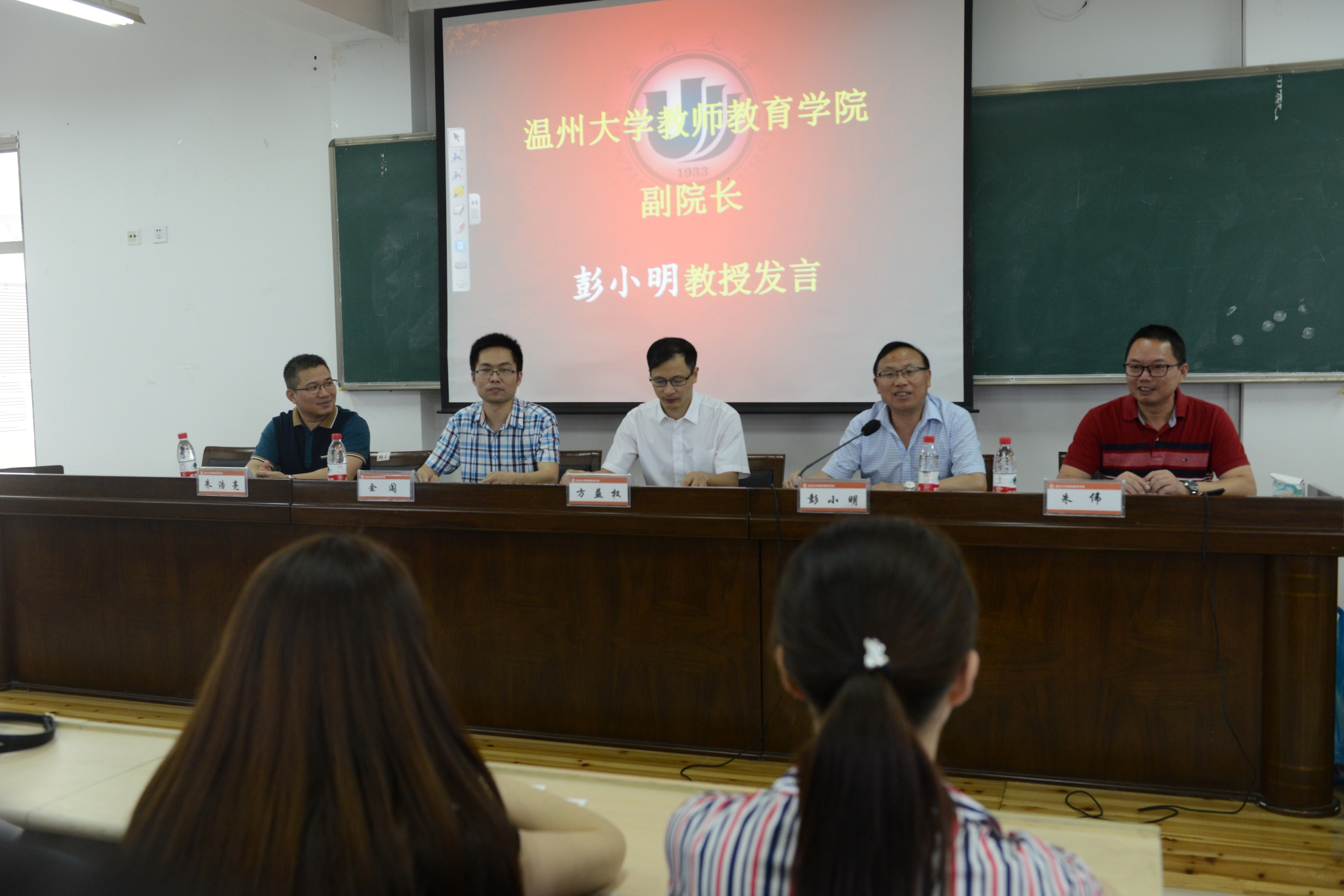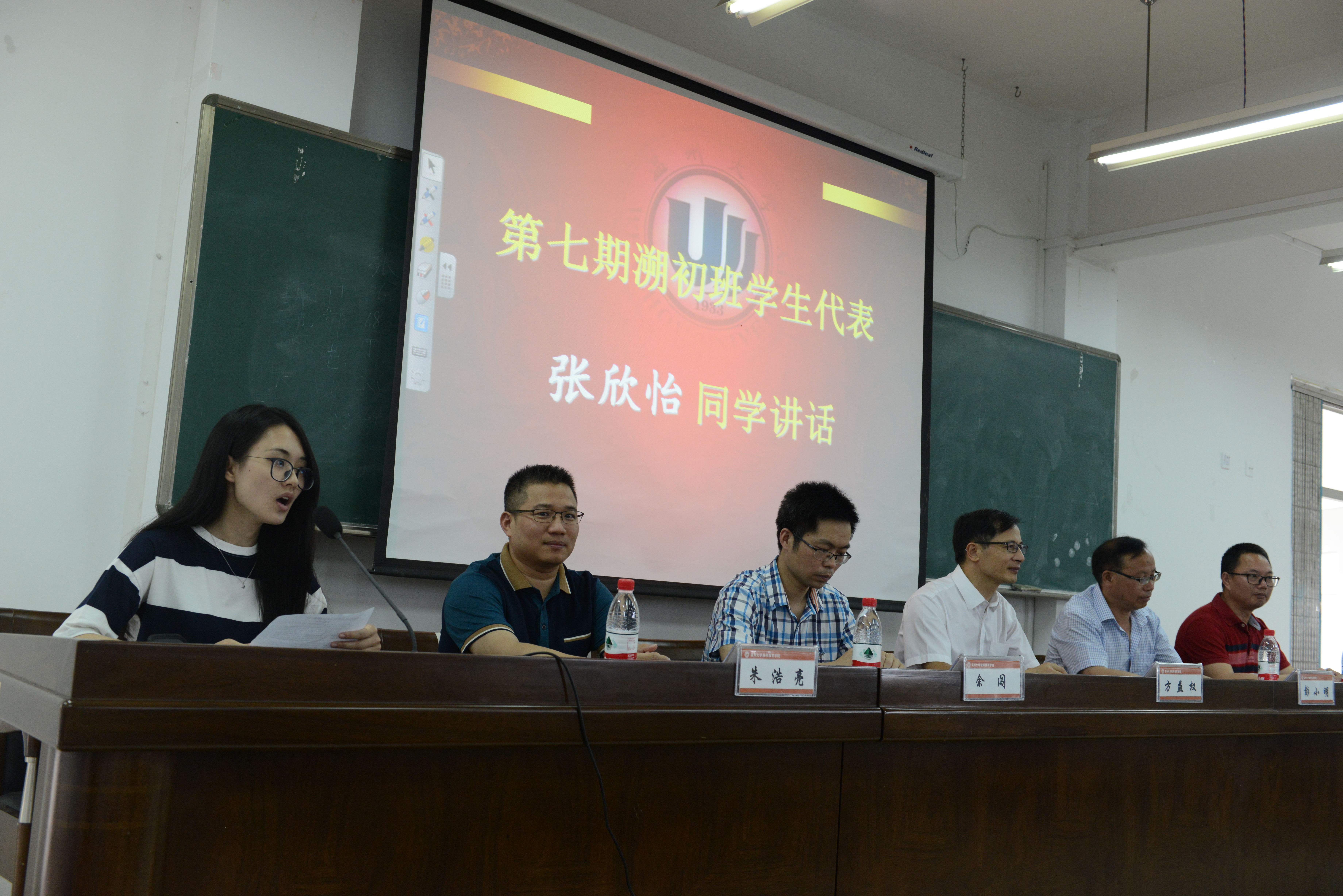 彭小明副院长、本期溯初班班主任朱浩亮老师、溯初班兼职秘书朱伟老师以及第七期溯初班全体学员。典礼由教务处余闯处长主持。