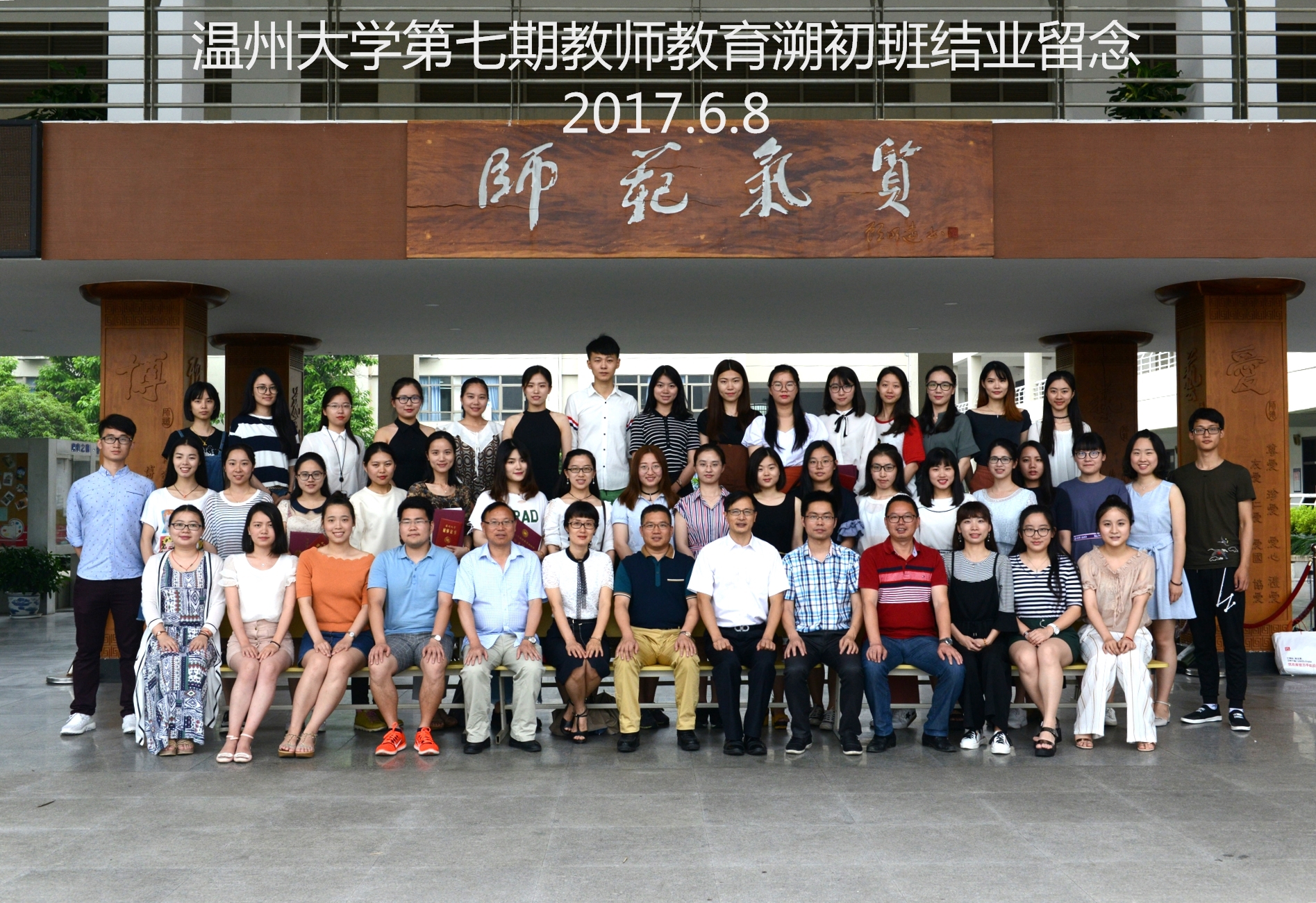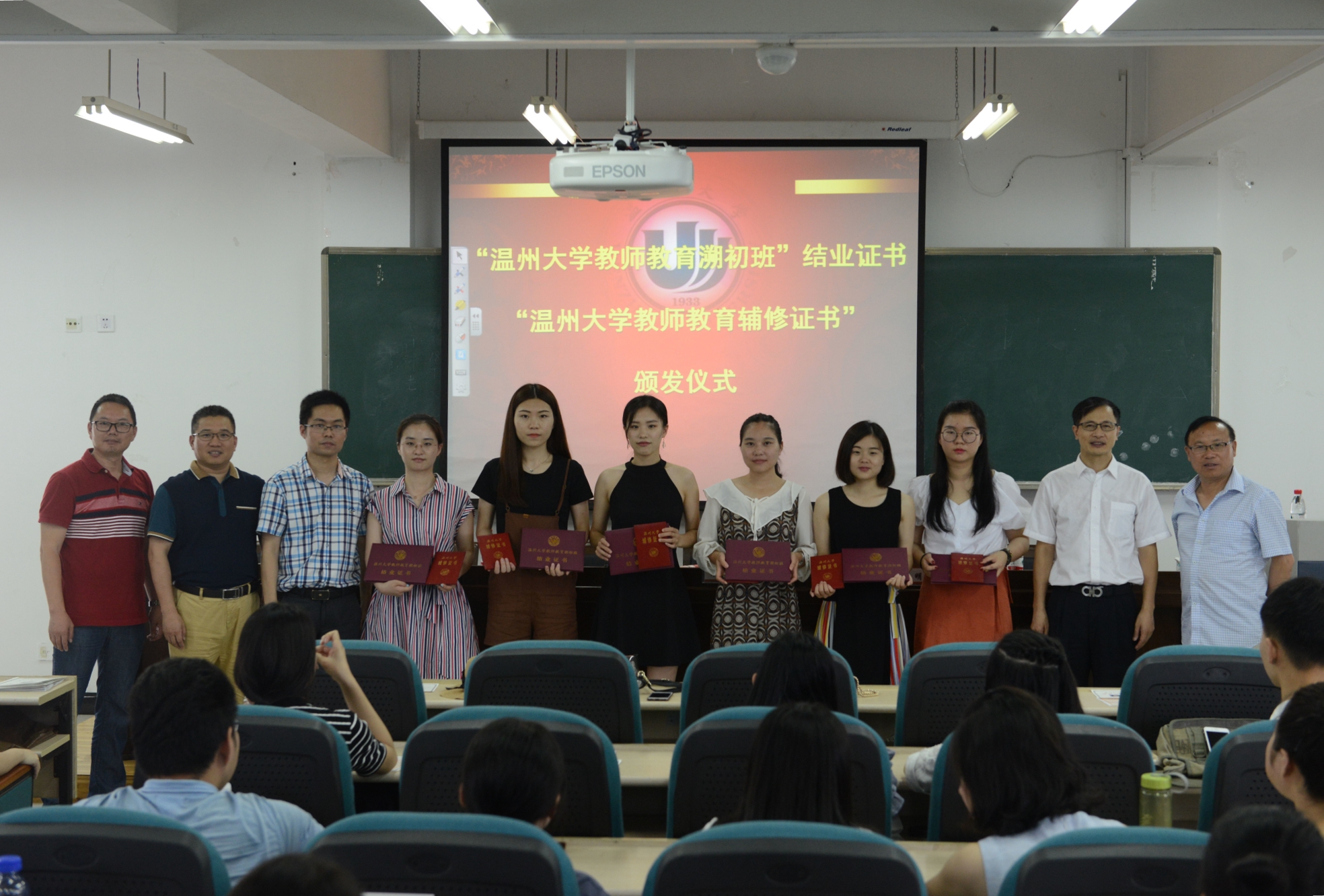 最后,方校长为同学们颁发了“温州大学教师教育溯初班结业证书”和“温州大家教师教育辅修证书”。参加典礼的领导、老师和同学们在教育楼一楼“师范气质”牌匾下合影留念。