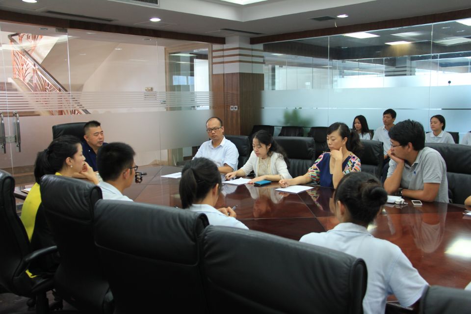 一路我享暑期社会实践队的队员们在行政大楼的六楼会议室,奥康集团董事长王振滔、成人网站