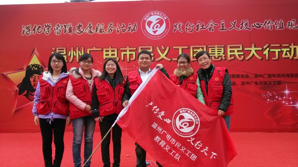 此次活动是在温州市松台广场展开。达到目的地,我们找到自己的展台整理一下,穿上广电市民义工团的服装,成为了20支义工队其中一支——教育义工队。在正式开始前,我们参加了惠民大行动的开幕式,在主持人的主持和领导的讲话下,了解市民义工团的运作及其意义等。惠民大行动是在雷锋精神的熏陶下践行社会主义核心价值观。