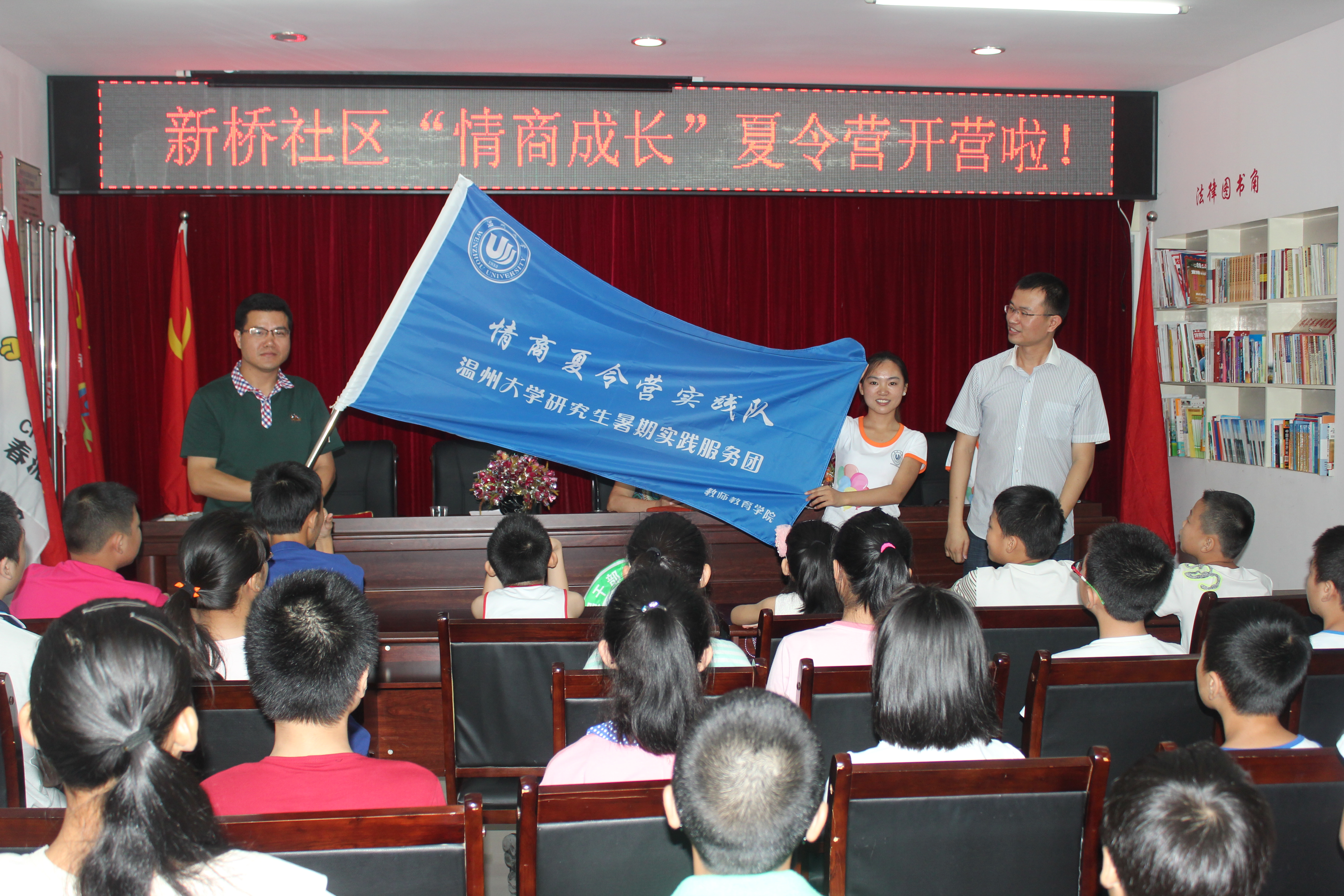 情商夏令营实践队和新桥社区共同主办的“情商成长夏令营”正式开营,团市委学少部部长池腾飞、新桥社区主任许信月、温州大学教师成人网站