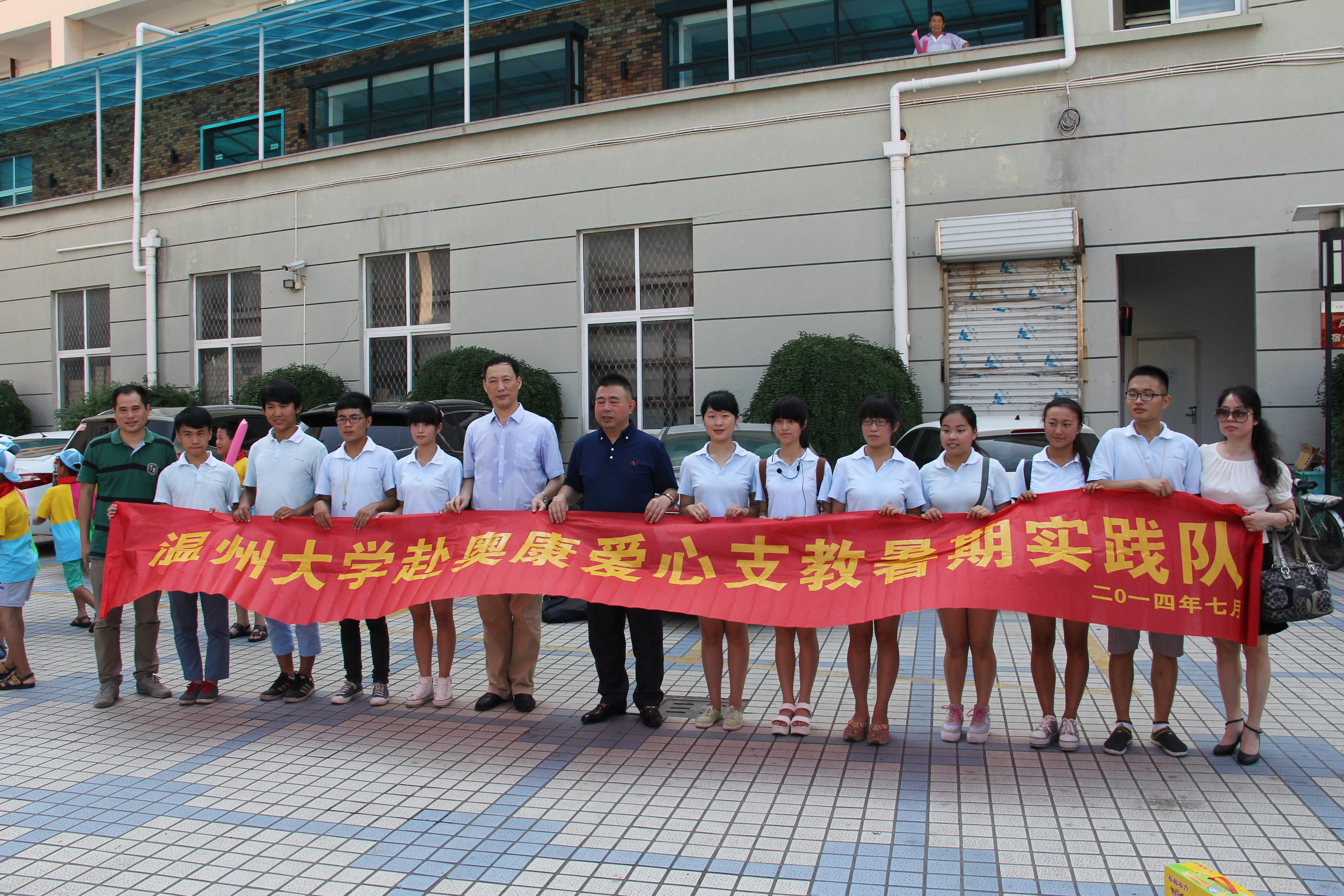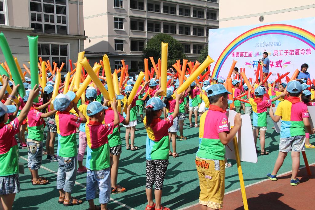 2014年温州大学与奥康集团建立了合作关系,并且在奥康建立属于我们温州大学的暑期社会实践基地。为此,开营仪式中,牟书记为基地进行授牌,正式宣布“温州大学爱心支教联盟”的成立。随着奥康集团王振滔董事长宣布夏令营正式开始,开营仪式也逐渐来到了尾声。此时,会场上传来了小朋友热烈的掌声,他们手拿五彩缤纷的充气棒,红、橙、黄、绿、青、蓝、紫,远远望过去就好像是一道美丽的彩虹。