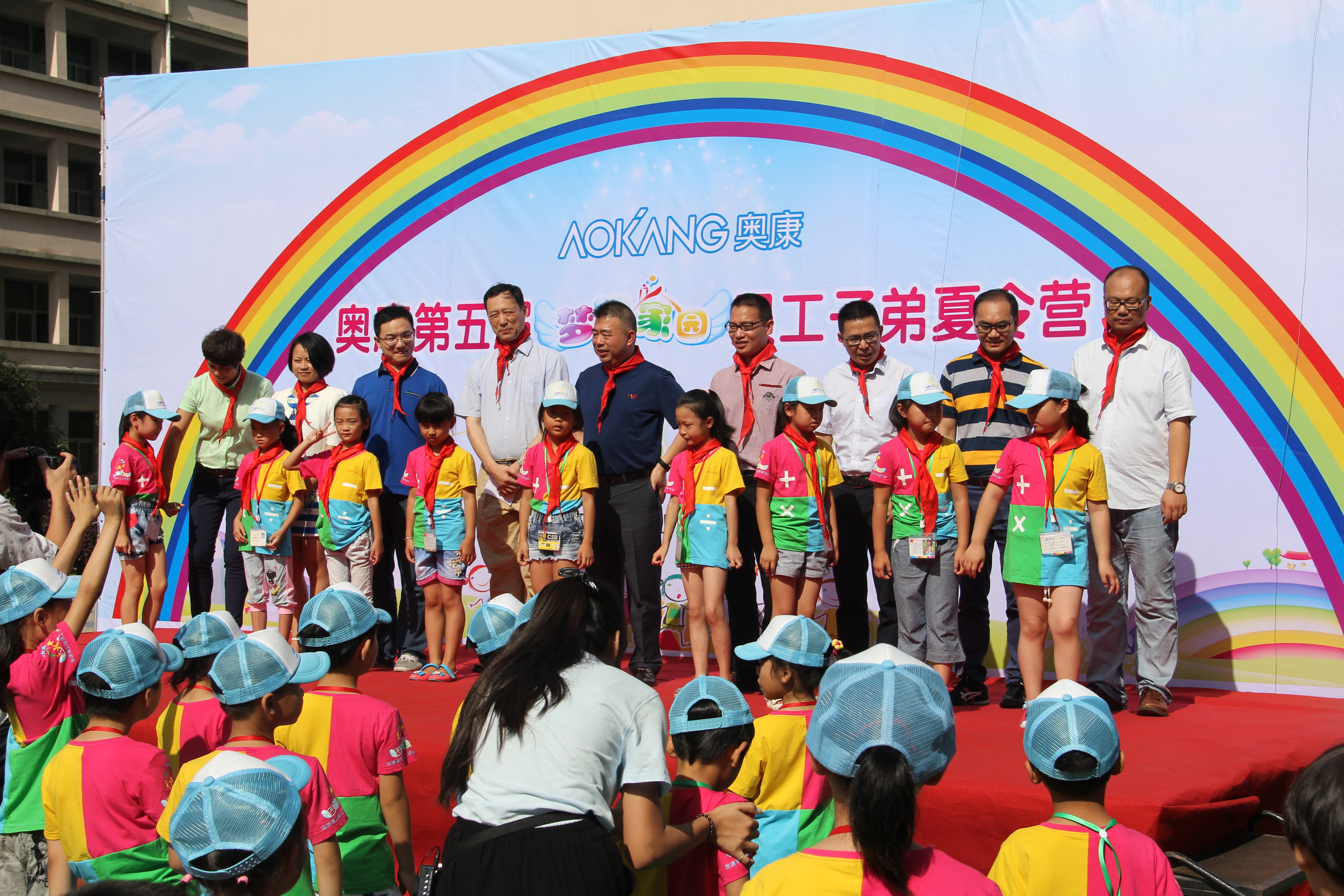 党总支副书记嵇小怡老师,院学生科副科长陈秀雅老师,校团委曾国仕老师等一行提前来到奥康总部-----本次夏令营开营仪式现场。老师们在入口处认真地观看着夏令营小朋友们的队列。看着孩子整齐、有序的队伍,听着那充满童趣且又响亮的口号,老师们的脸上都浮现出赞赏与欣慰的笑容。开营仪式是以六个年级七个班级的口号展示为开头的,各个班级的小朋友都非常地热情,声音洪亮,如火箭升空一般,响彻云霄。随后牟书记,王振滔董事长依次发言,与台下的小朋友进行互动,节目一个接一个,掌声一片接一片,精彩且富有童真。