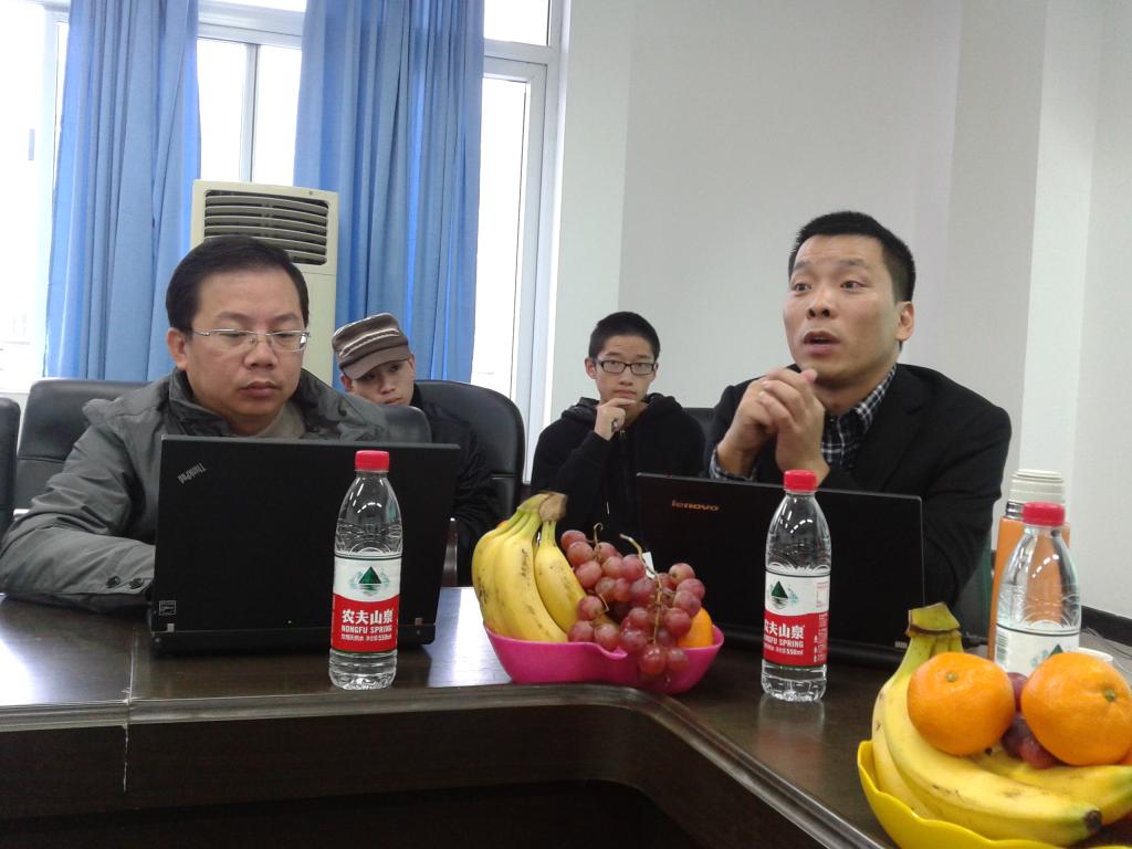 研讨课在热烈的气氛中展开,王佑镁老师结合本班前期在温州中学见习情况,与大家分享了信息技术对这所省级重点中学的促进作用,进而引出教育技术学的努力方向和发展要求。回忆起这短短的一周,同学们都感触颇深。而后,谢作如老师就“如何成为一名优秀的教育技术从业者”分享了自己的成长经历,主要介绍了个人历程、选修课程开发,《互动媒体技术》的开发历程、未来的准备等四个方面,与大家深入探讨了本专业的现状及前景。研讨之末,谢老师告诫大家“做自己擅长的”,这也是专业定向时最核心的标准。他的经历诠释了“小目标也可以成就大梦想”,给了我们极大的鼓舞;他的话语谦虚幽默,传达了对我们新一代的殷切期望。会中,大家边吃水果边交流,老师们亲切的面孔让我们倍感温馨。最后,张新立老师为大家介绍了12级实践教学体系,明确了本专业四年发展方向。